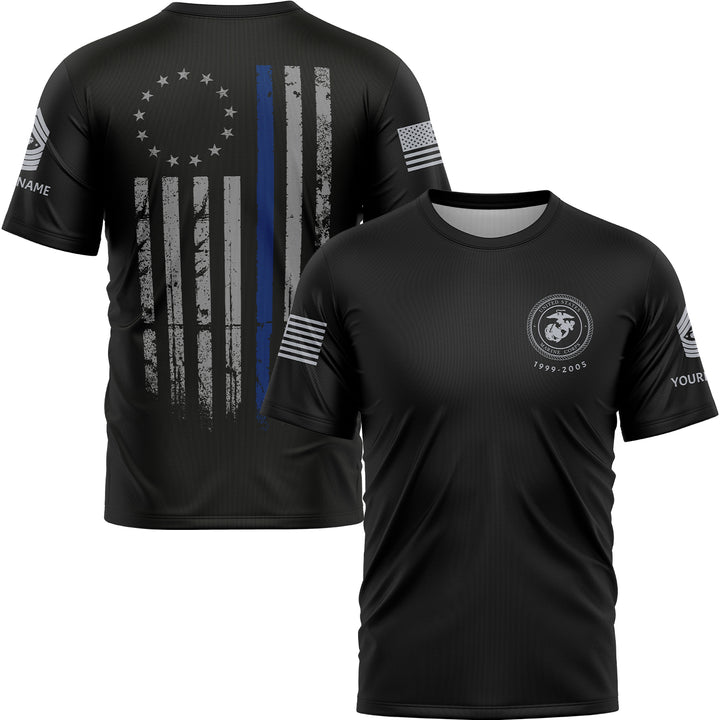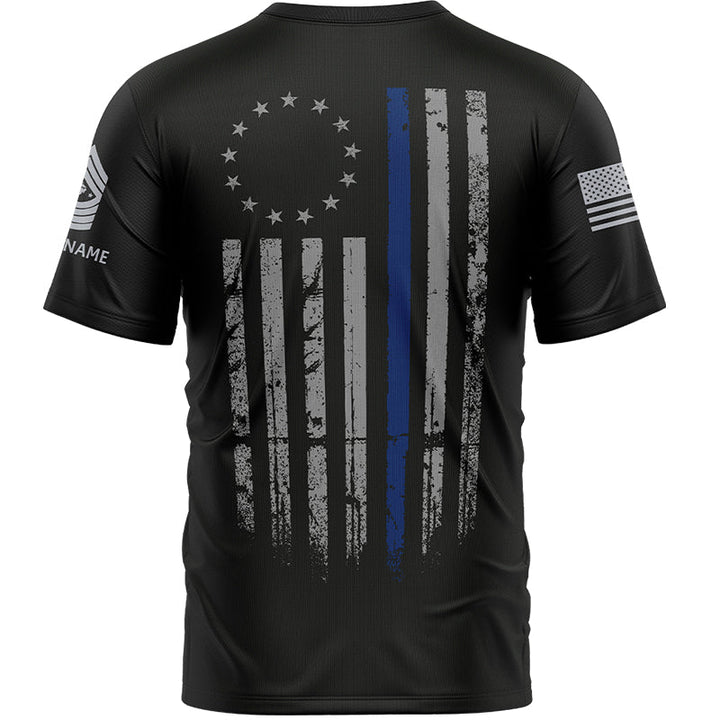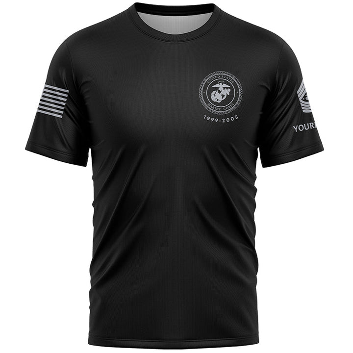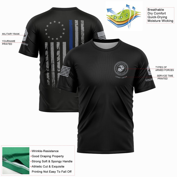 Custom Black American Flag Military Rank Veteran Name T-Shirt