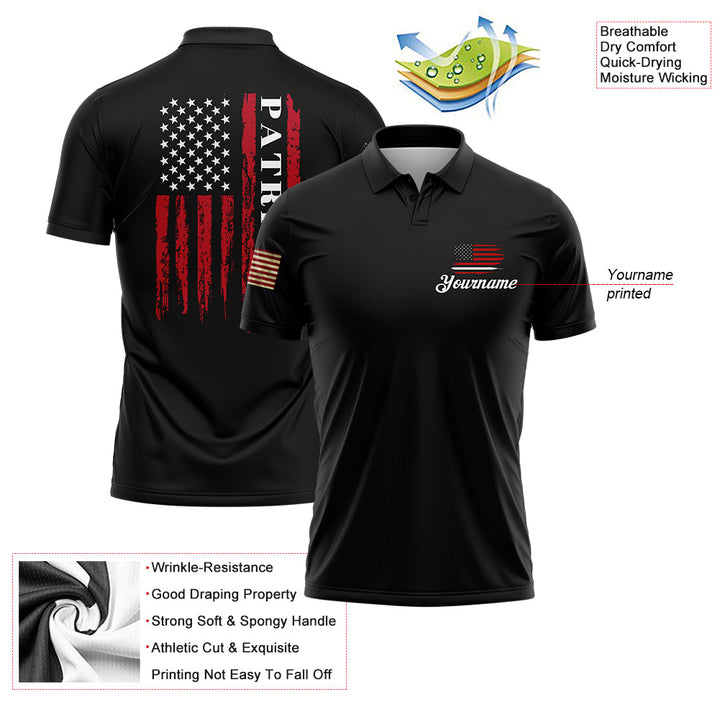 Custom Black American Patriot Name Golf Polo Shirt