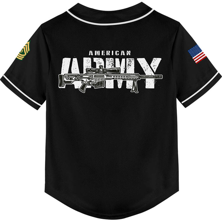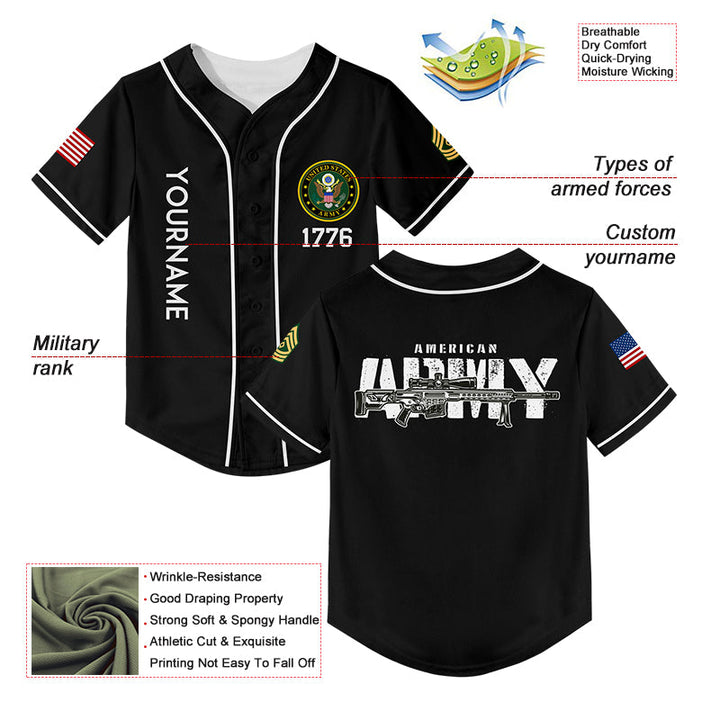Custom Black Barrett 1776 American Flag U.S Army Military Rank Name Baseball Jersey