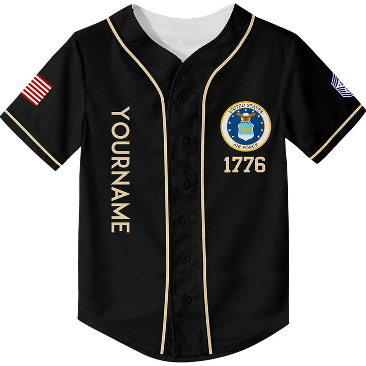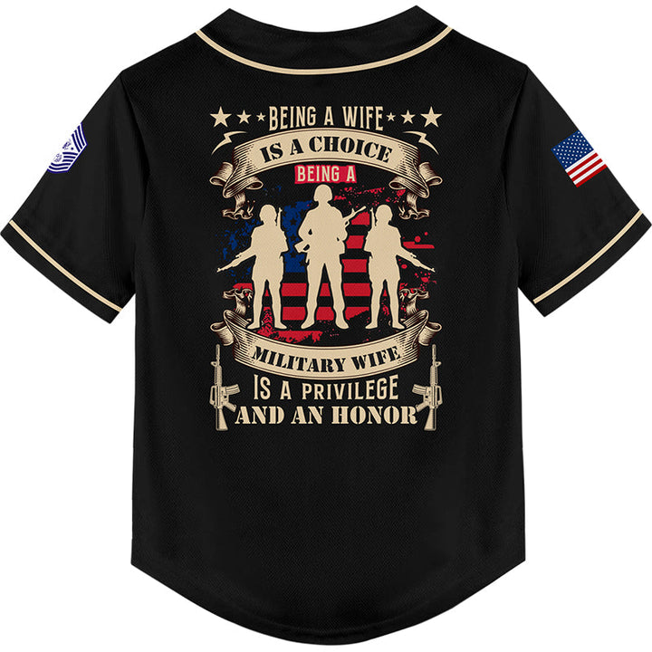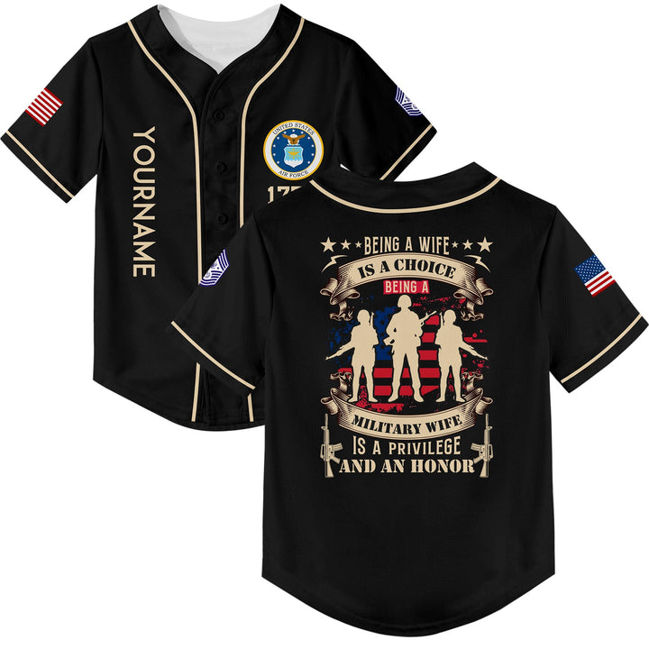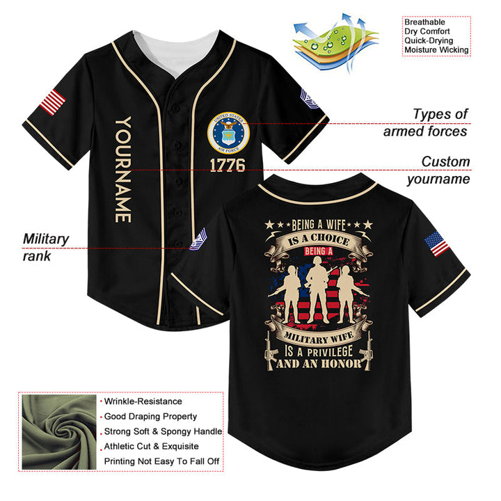 Custom Black Being A Wife Is A Choice Being A Military Wife 1776 Flag U.S Air Force Military Rank Name Veterans Day Baseball Jersey