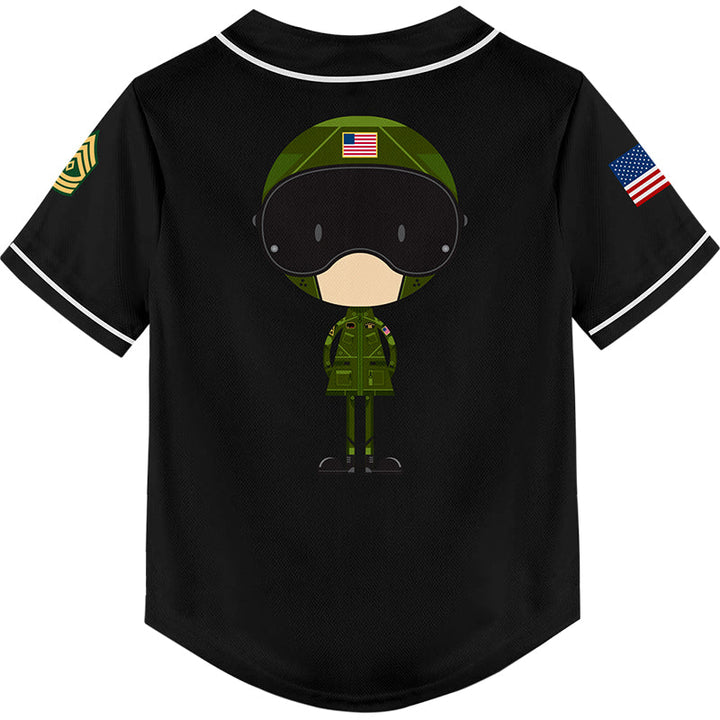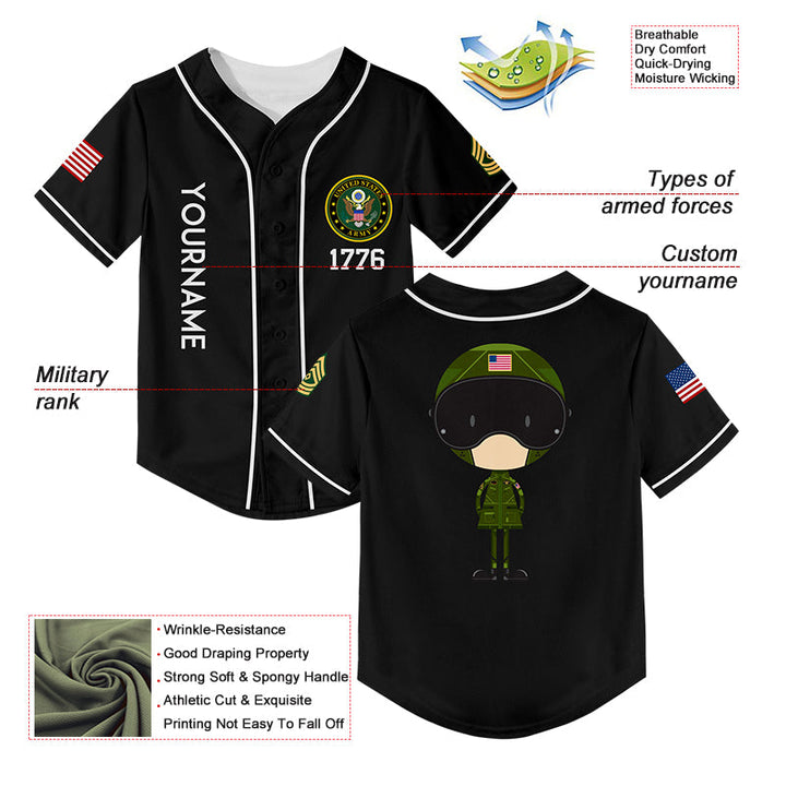 Custom Black Cartoon 1776 U.S Army Military Rank Name Baseball Jersey