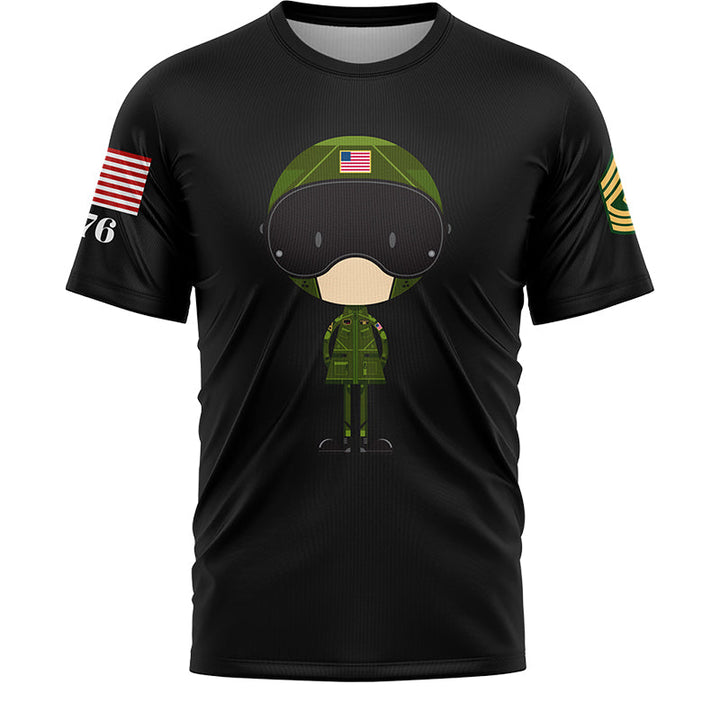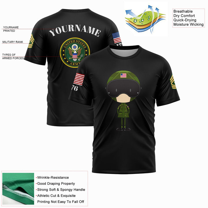 Custom Black Cartoon 1776 U.S Army Military Rank Name T-Shirt