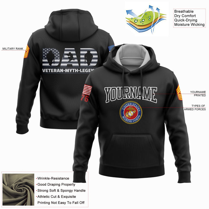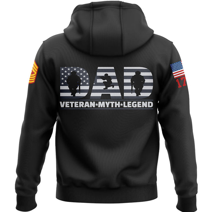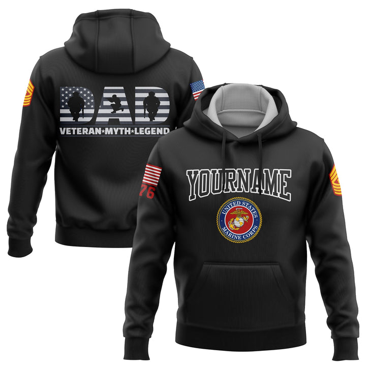 Custom Black Dad Veteran Myth Legend 1776 Flag U.S Marine Corps Military Rank Name Veterans Day Hoodie | Father's Day Gifts