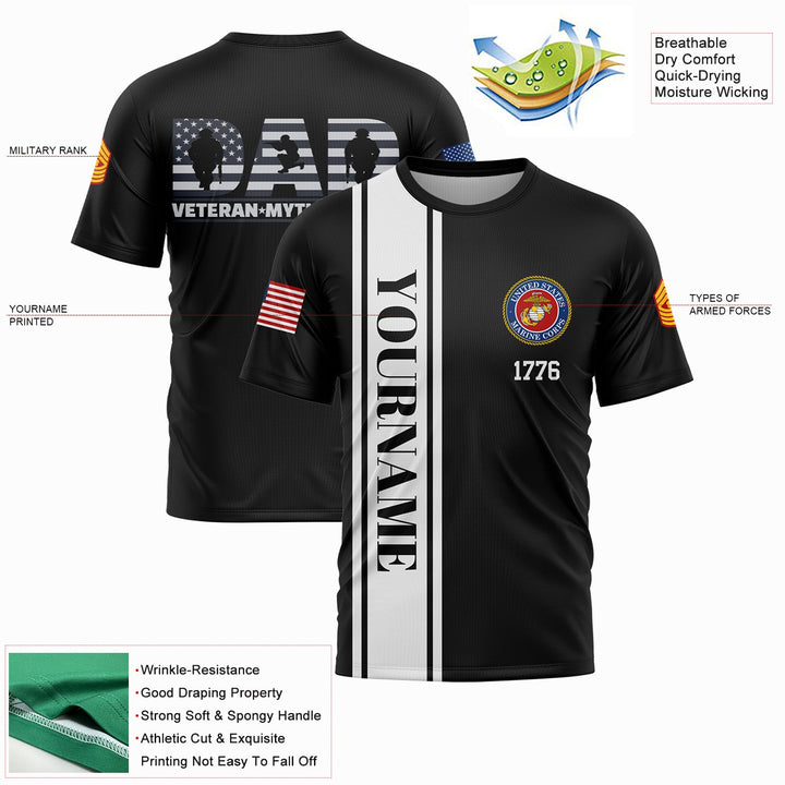 Custom Black Dad Veteran Myth Legend 1776 Flag U.S Marine Corps Military Rank Name Veterans Day T-Shirt | Father's Day Gifts
