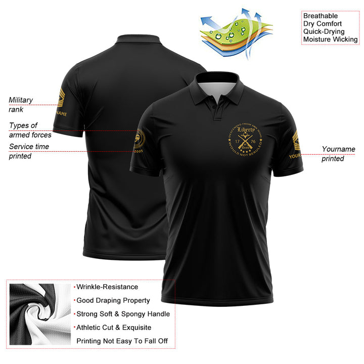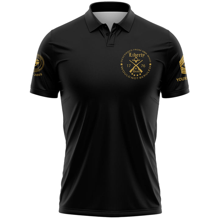 Custom Black Descended From Men Who Would Not Beruled 1776 Military Rank Veteran Name Golf Polo Shirt