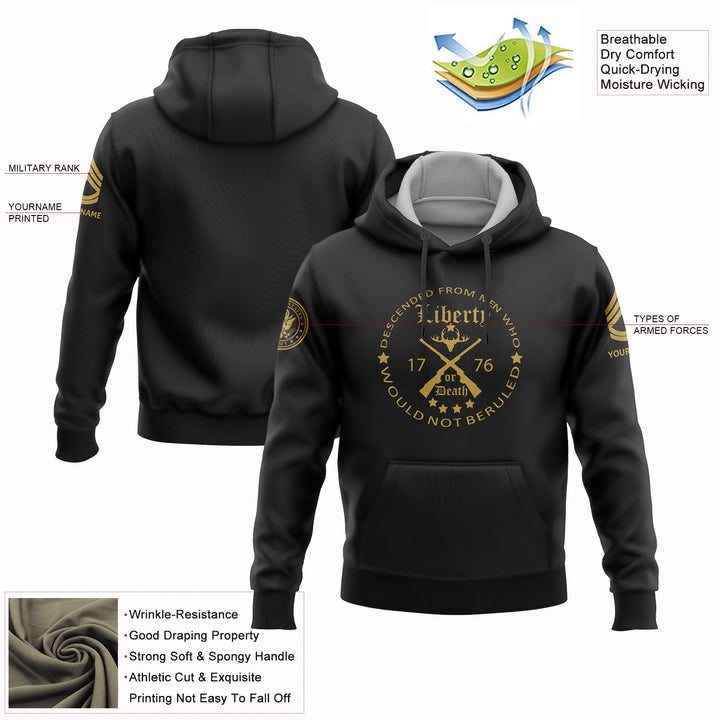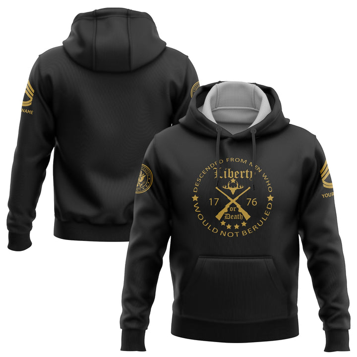Custom Black Descended From Men Who Would Not Beruled 1776 Military Rank Veteran Name Hoodie
