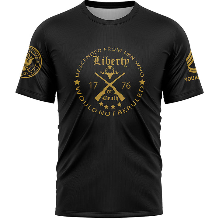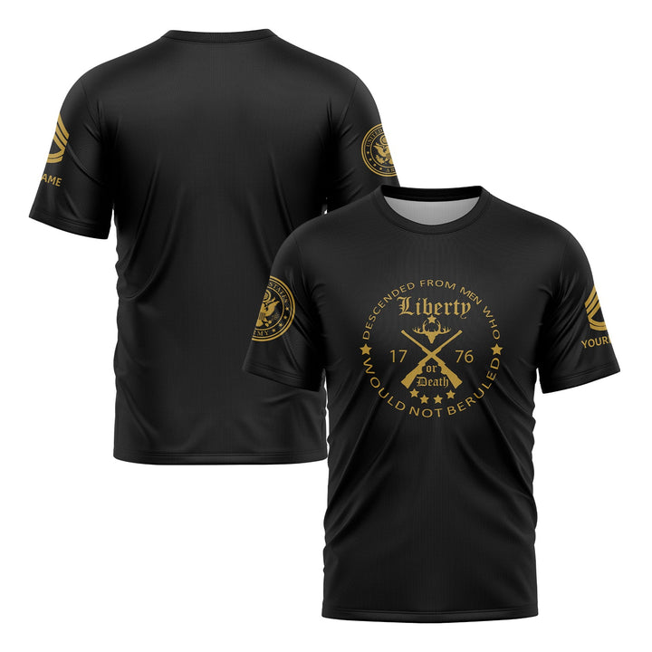 Custom Black Descended From Men Who Would Not Beruled 1776 Military Rank Veteran Name T-Shirt