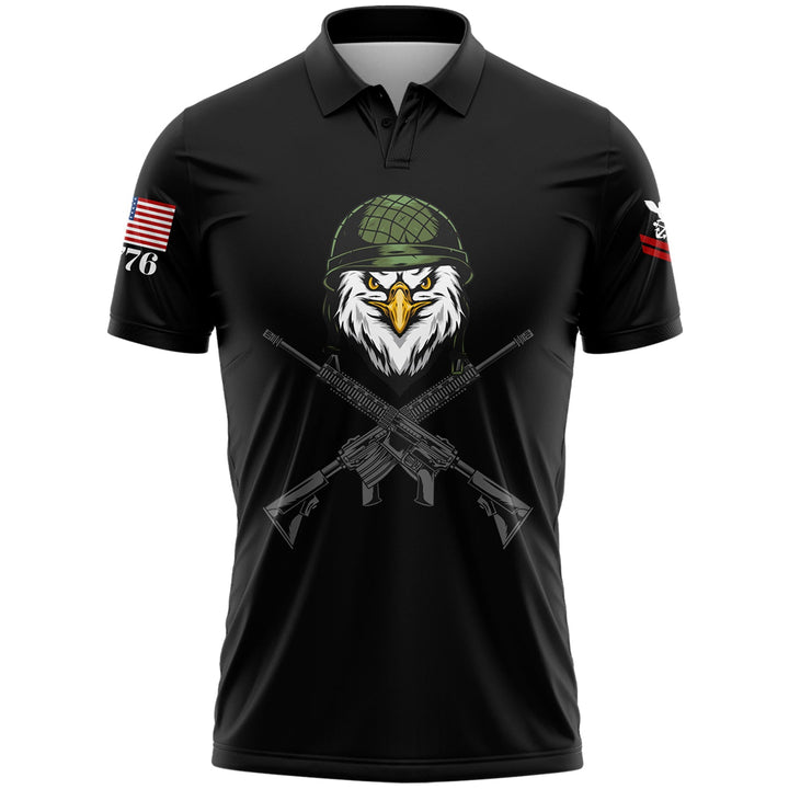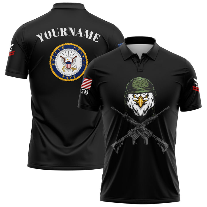 Custom Black Eagle 1776 U.S Navy Military Rank Name Golf Polo Shirt