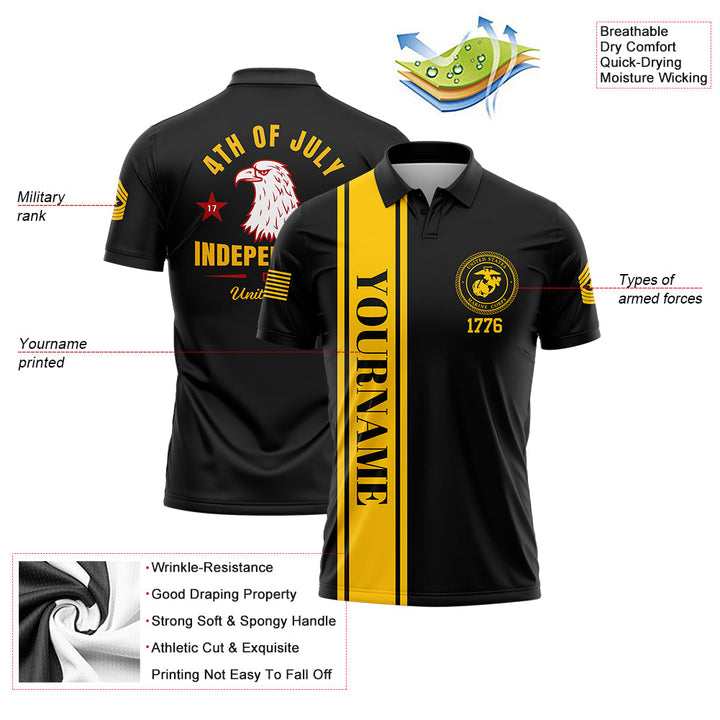 Custom Black Eagle 4th Of July Military Rank Name Independence Day Golf Polo Shirt