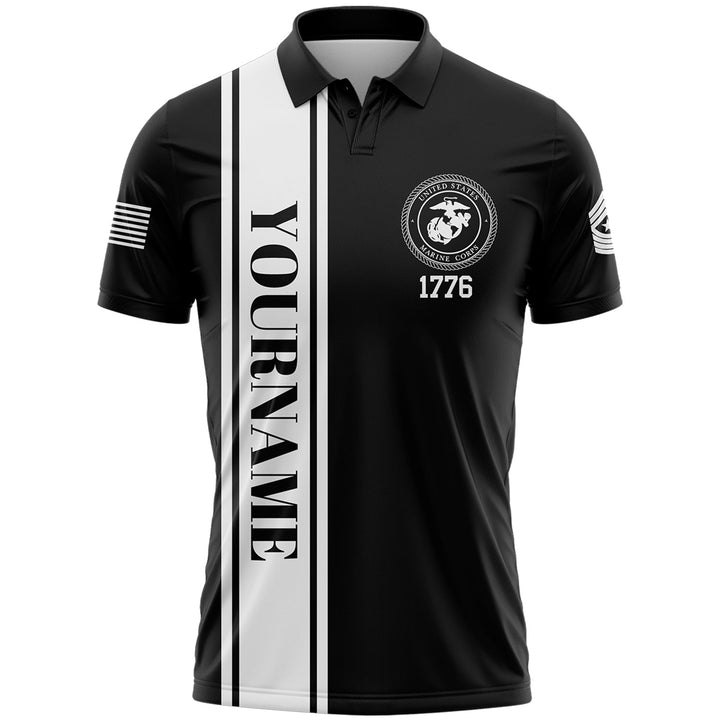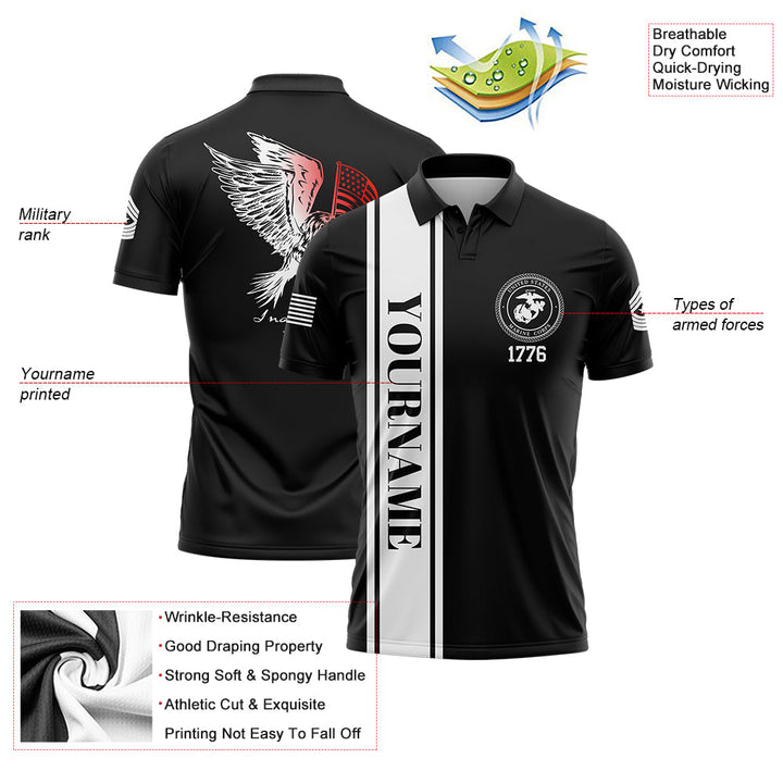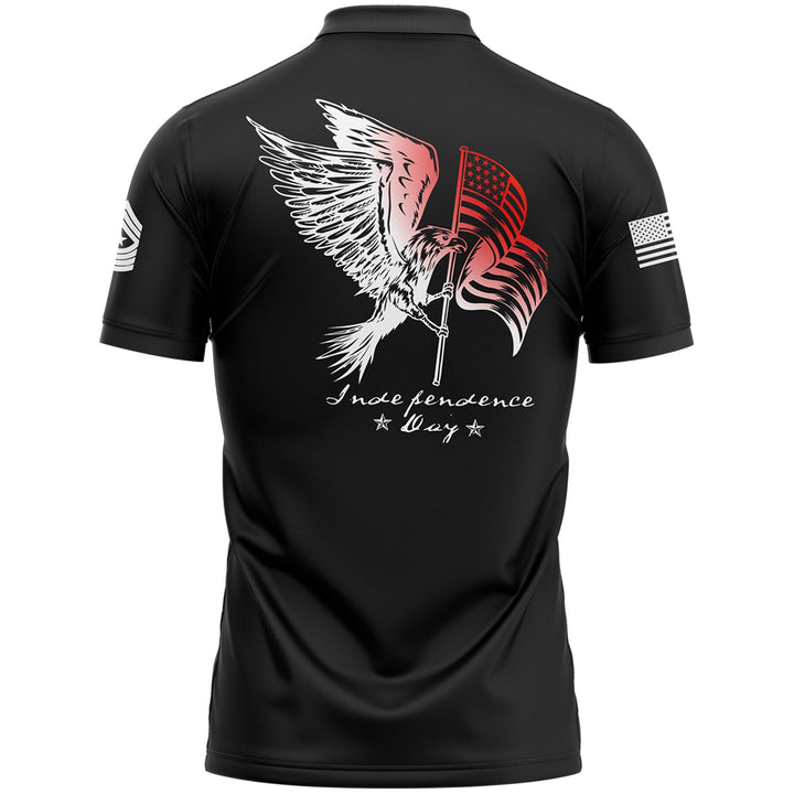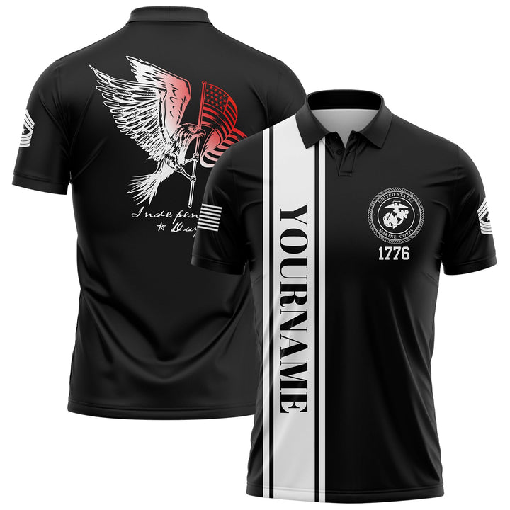 Custom Black Eagle American Flag Military Rank Name Independence Day Golf Polo Shirt