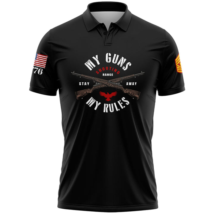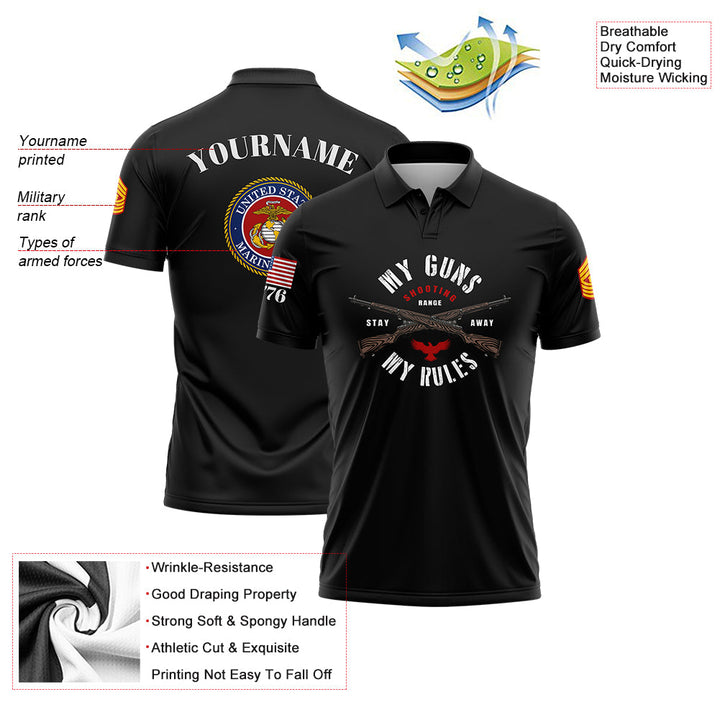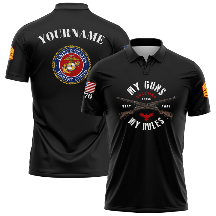 Custom Black Eagle My Rules 1776 U.S Marine Corps Military Rank Name Golf Polo Shirt
