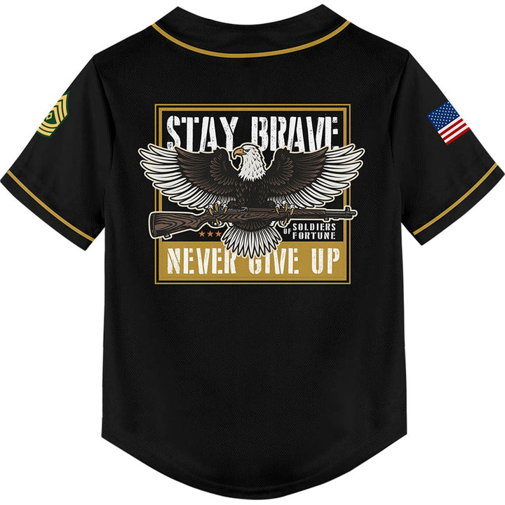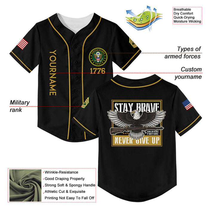 Custom Black Eagle Stay Brave Never Give Up 1776 U.S Army Military Rank Name Baseball Jersey