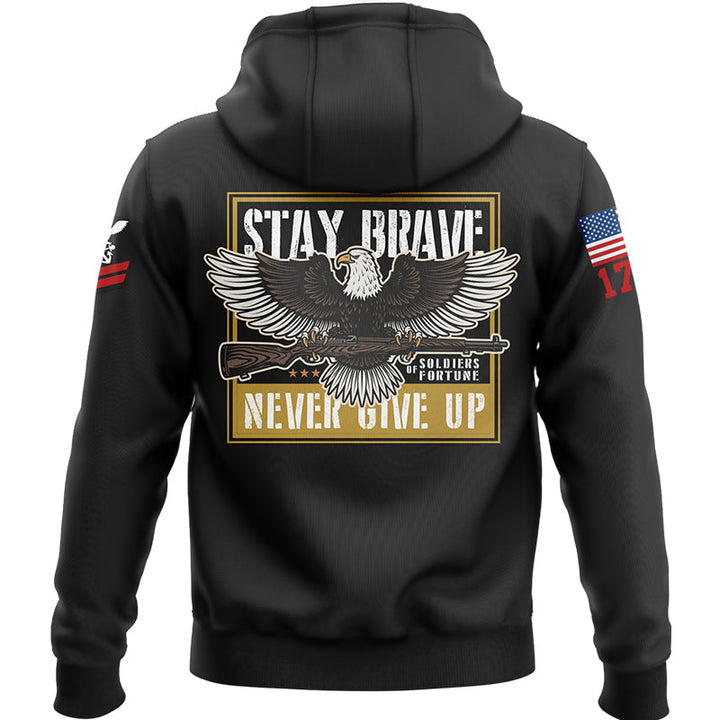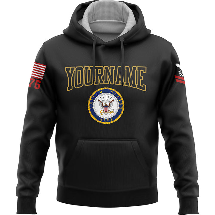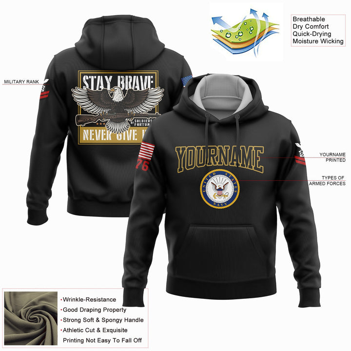 Custom Black Eagle Stay Brave Never Give Up 1776 U.S Navy Military Rank Name Hoodie