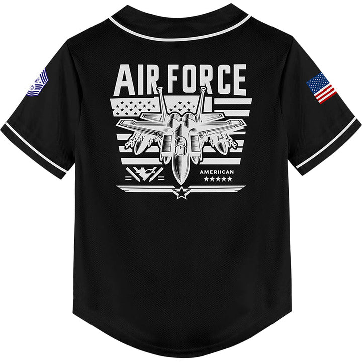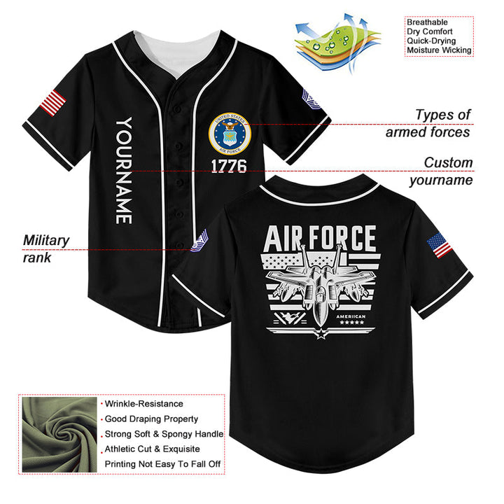 Custom Black Fighter 1776 American Flag U.S Air Force Military Rank Name Baseball Jersey