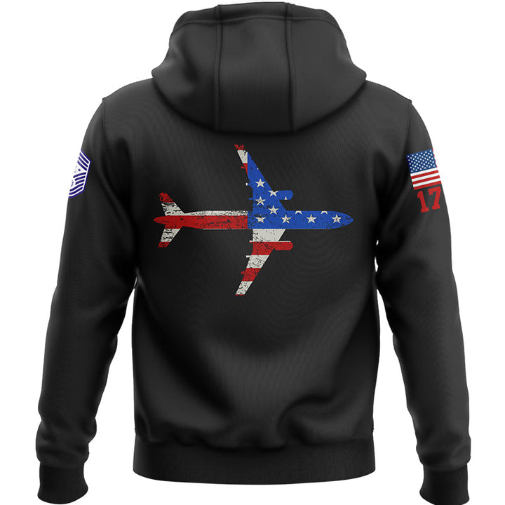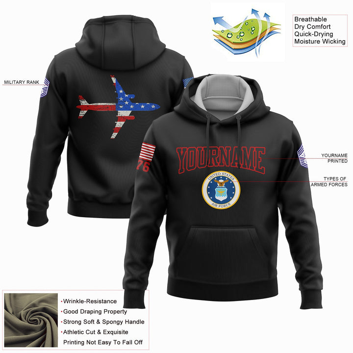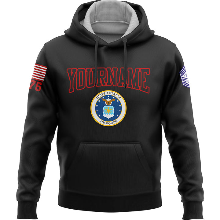 Custom Black Fighter 1776 American Flag U.S Air Force Military Rank Name Hoodie
