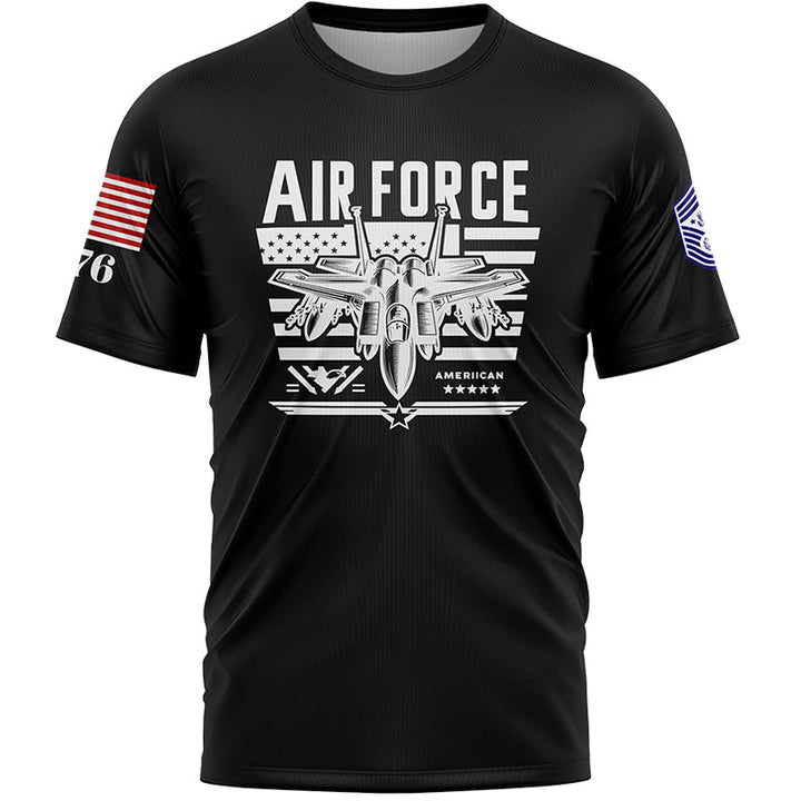 Custom Black Fighter 1776 American Flag U.S Air Force Military Rank Name T-Shirt