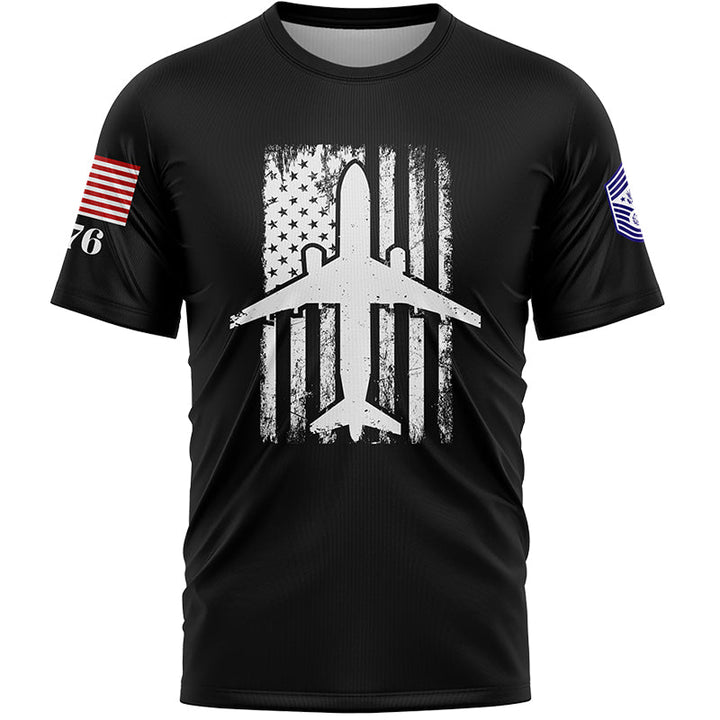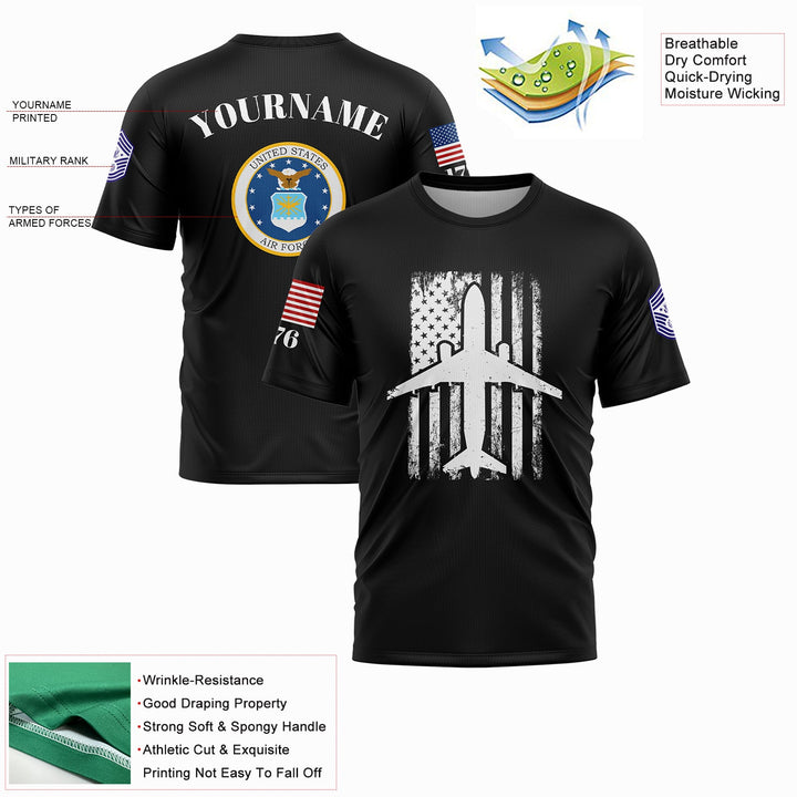 Custom Black Fighter 1776 American Flag U.S Air Force Military Rank Name T-Shirt