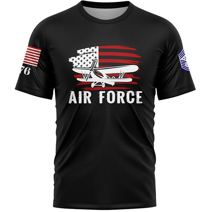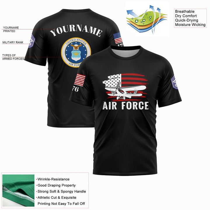 Custom Black Fighter 1776 American Flag U.S Air Force Military Rank Name T-Shirt
