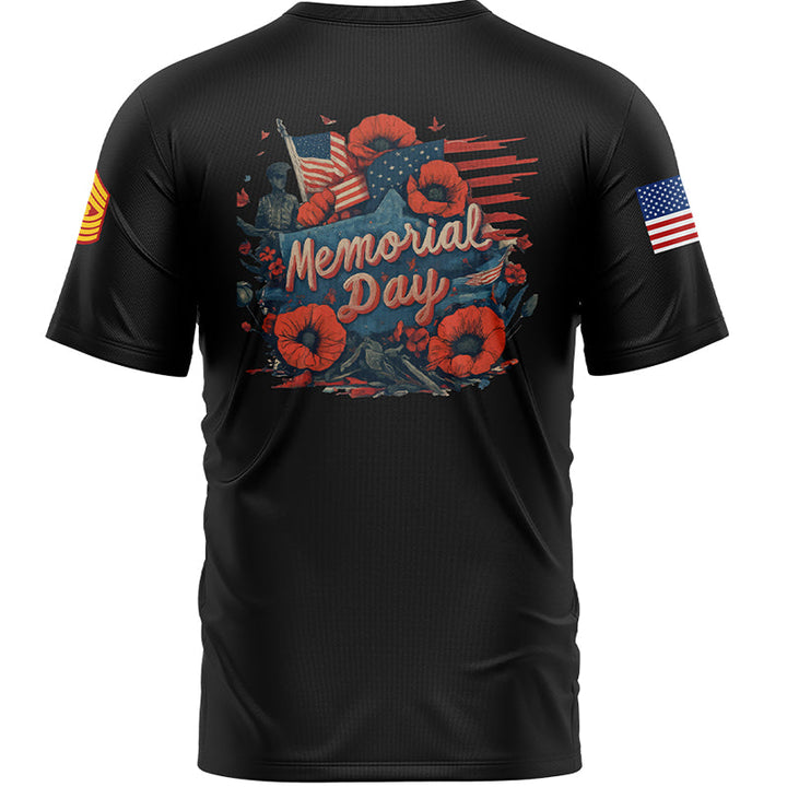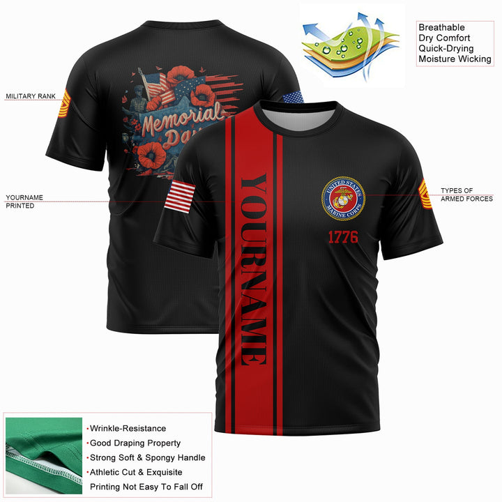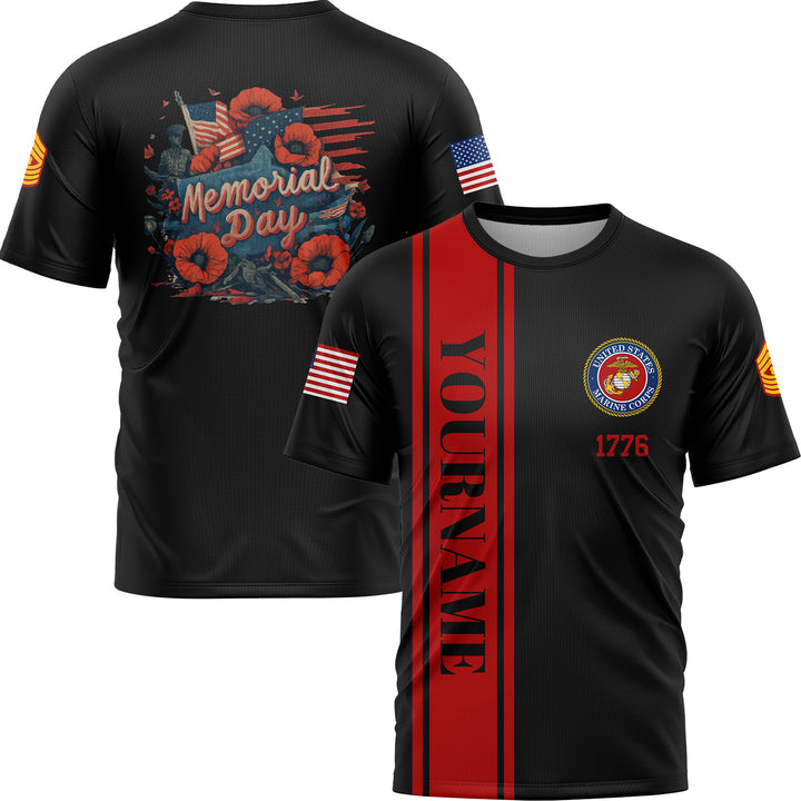 Custom Black Flower 1776 American Flag U.S Marine Corps Military Rank Name Memorial Day T-Shirt