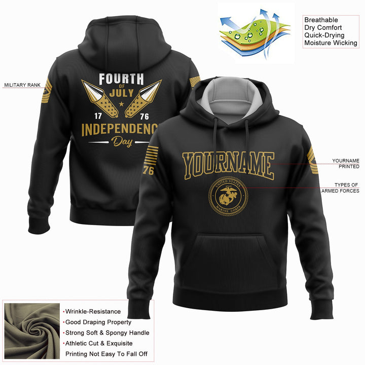 Custom Black Fourth Of July Military Rank Name Independence Day Hoodie | Father's Day Gifts