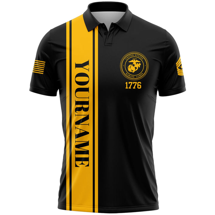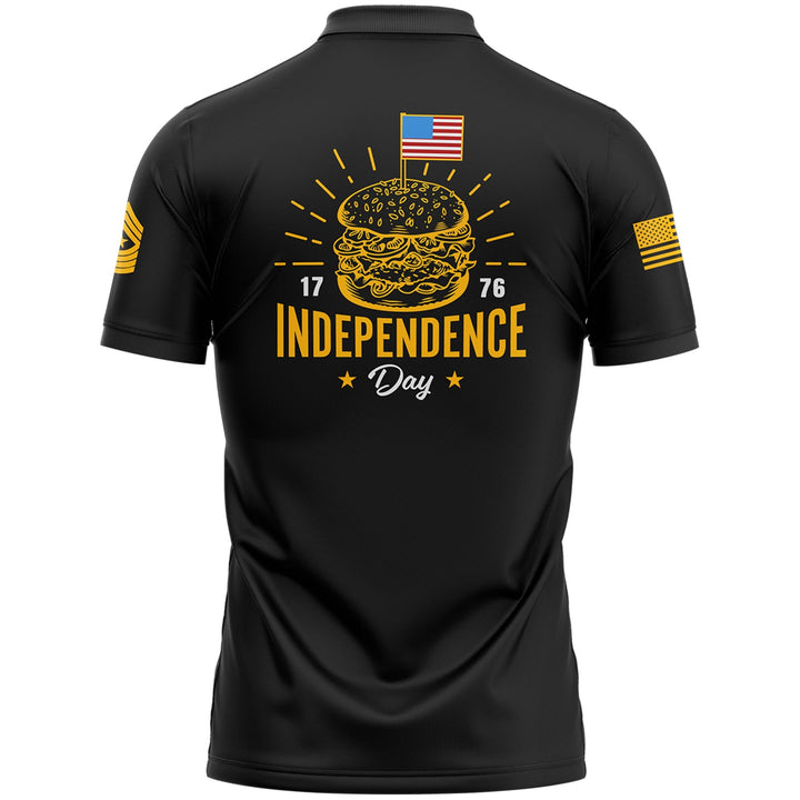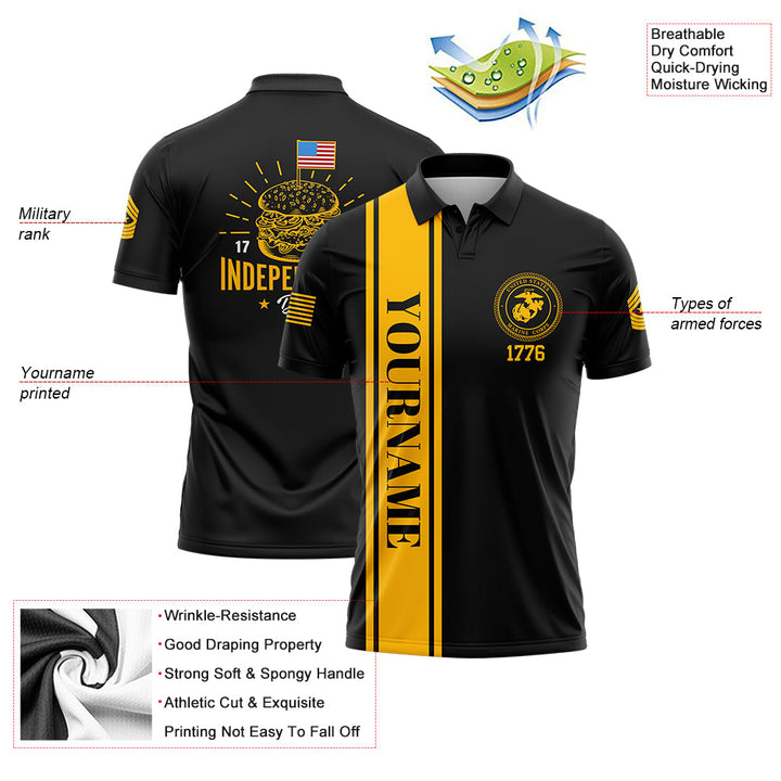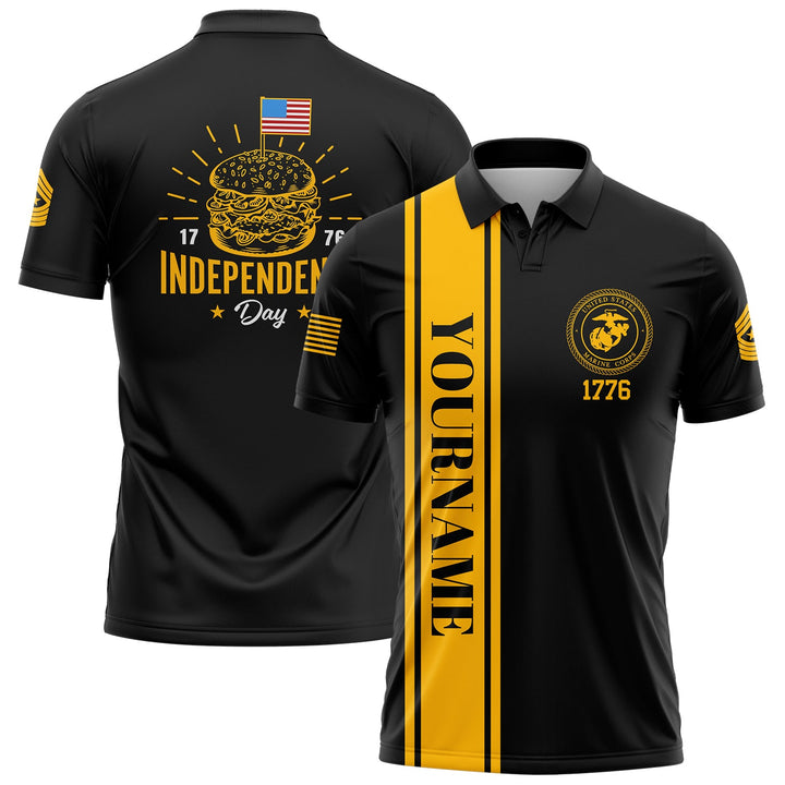 Custom Black Hamburger American Flag Military Rank Name Independence Day Golf Polo Shirt