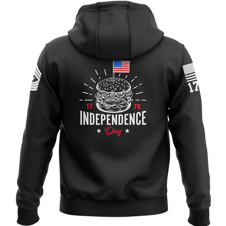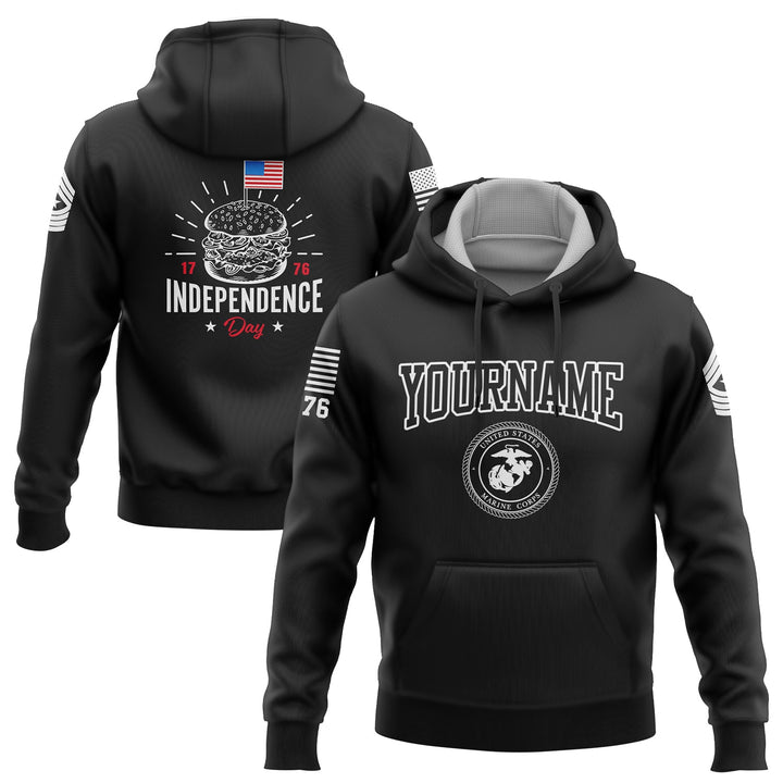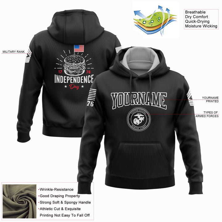 Custom Black Hamburger American Flag Military Rank Name Independence Day Hoodie | Father's Day Gifts