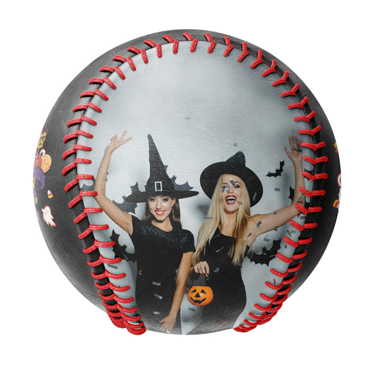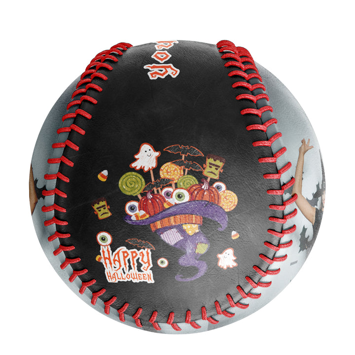 Custom Black Happy Halloween Pumpkin Ghost Bat Photo Baseballs