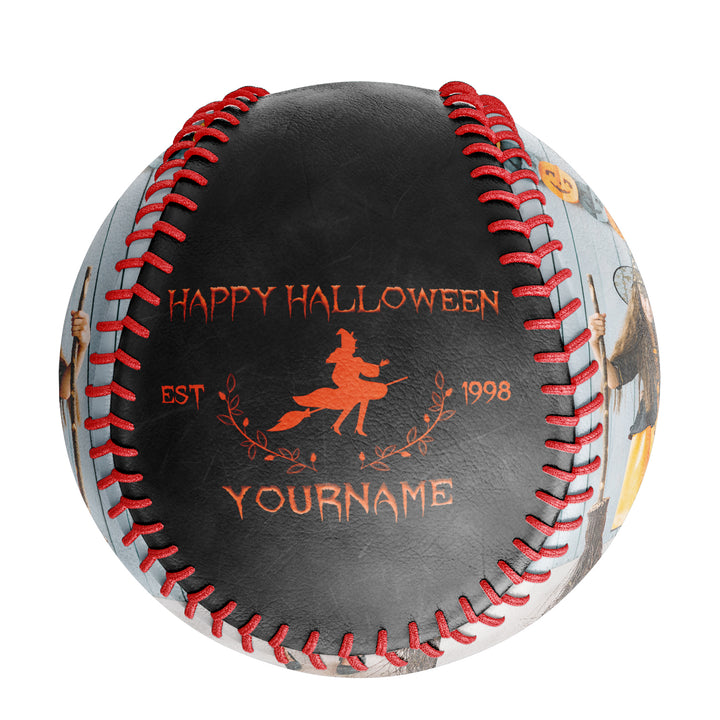 Custom Black Happy Halloween Witch Photo Baseballs