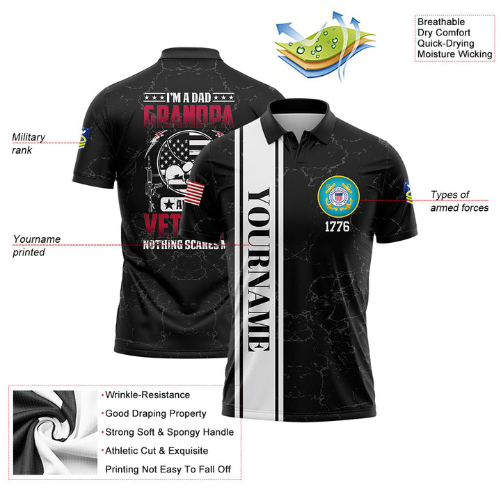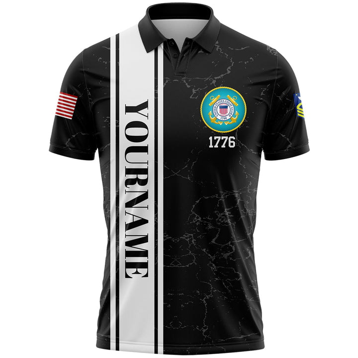 Custom Black Helmet 1776 Flag U.S Coast Guard Military Rank Name Veterans Day Golf Polo Shirt | Father's Day Gifts