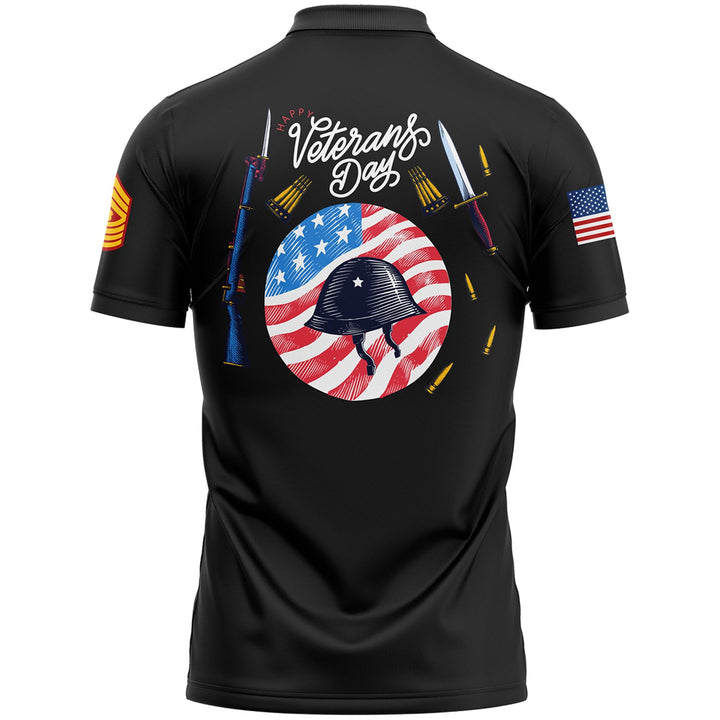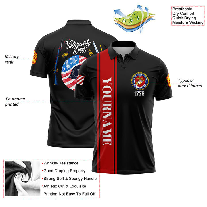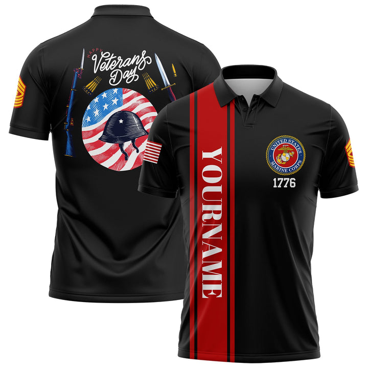 Custom Black Helmet 1776 Flag U.S Marine Corps Military Rank Name Veterans Day Golf Polo Shirt | Father's Day Gifts
