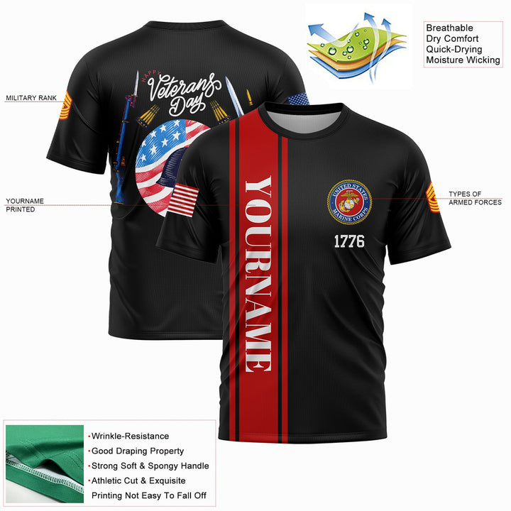 Custom Black Helmet 1776 Flag U.S Marine Corps Military Rank Name Veterans Day T-Shirt | Father's Day Gifts