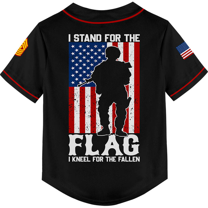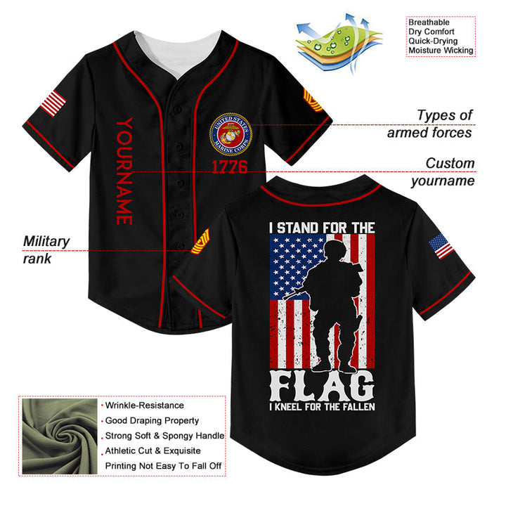 Custom Black I Stand For Flag I Kneel For The Fallen 1776 Military Rank Name Veterans Day Baseball Jersey