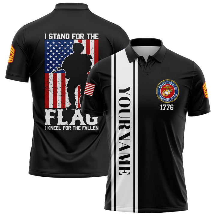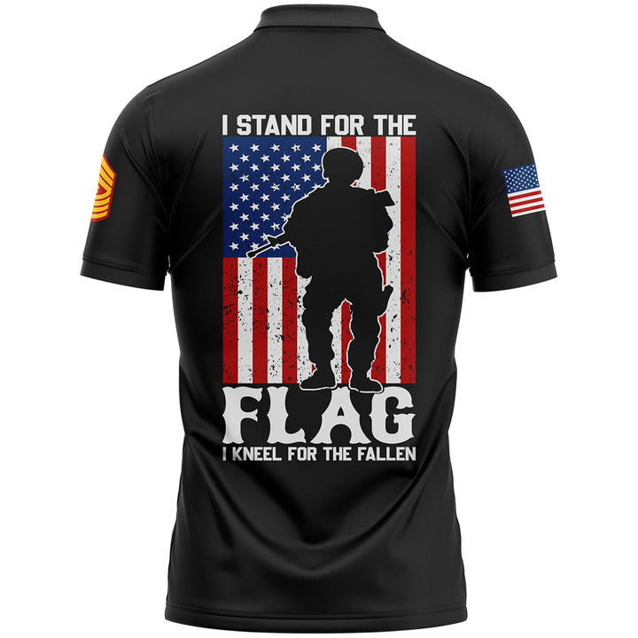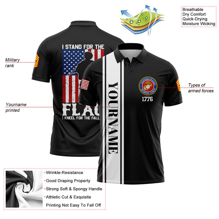 Custom Black I Stand For Flag I Kneel For The Fallen 1776 Military Rank Name Veterans Day Golf Polo Shirt