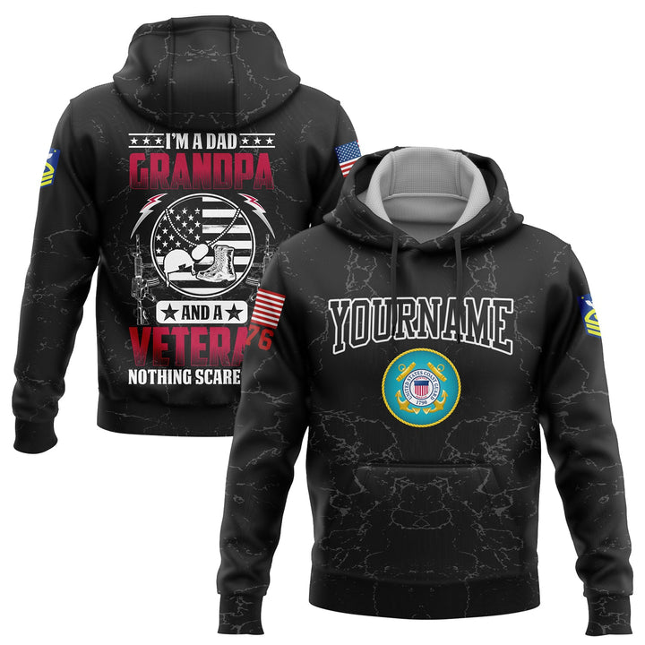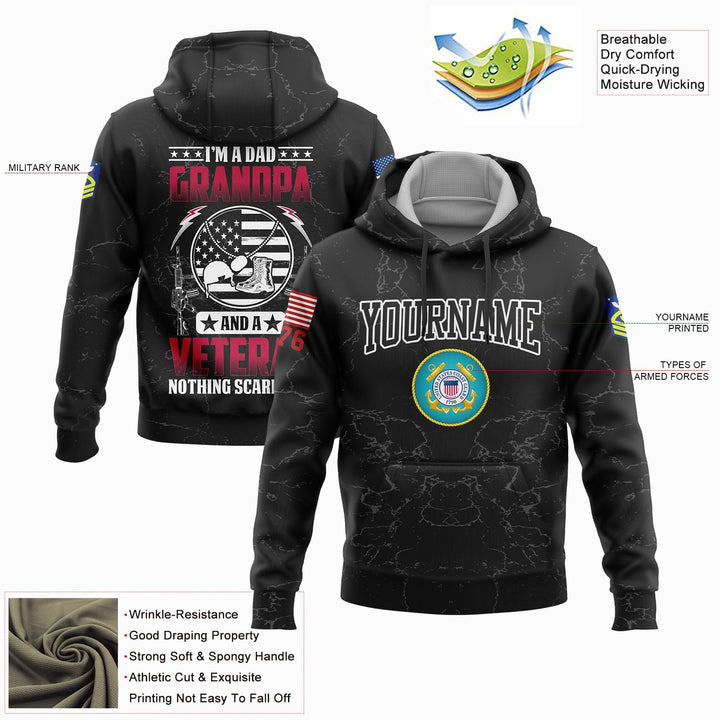 Custom Black I'm A Dad Grandpa 1776 Flag U.S Coast Guard Military Rank Name Veterans Day Hoodie | Father's Day Gifts