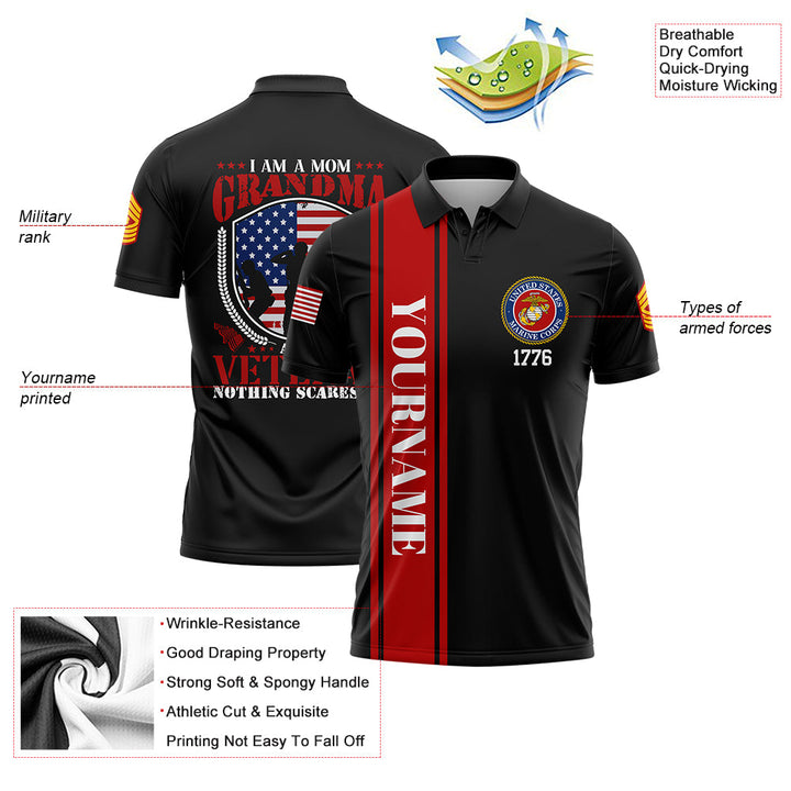 Custom Black I'm A Mom Grandma 1776 Flag U.S Marine Corps Military Rank Name Veterans Day Golf Polo Shirt | Father's Day Gifts