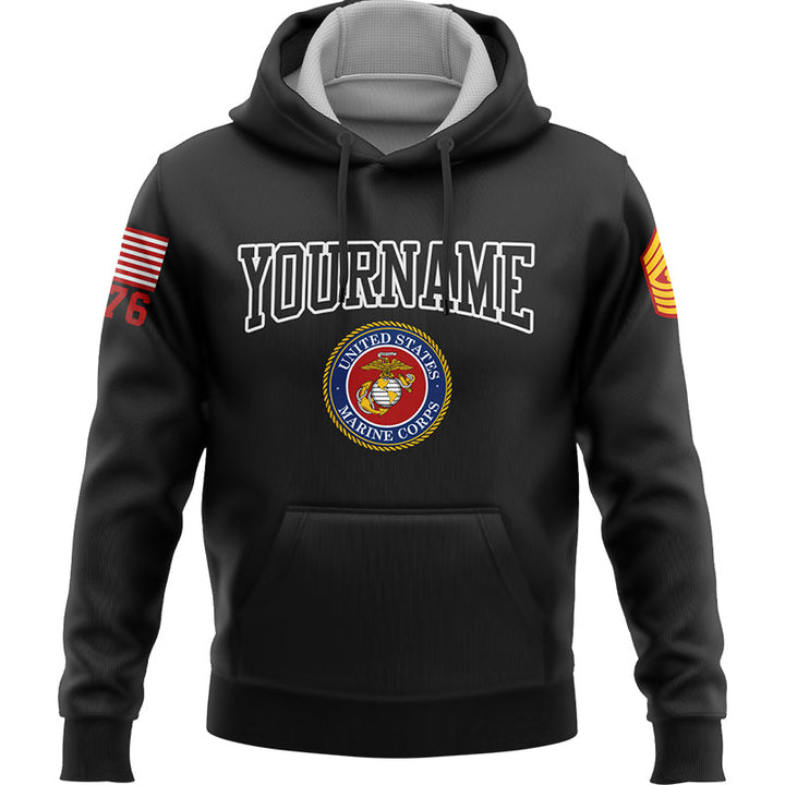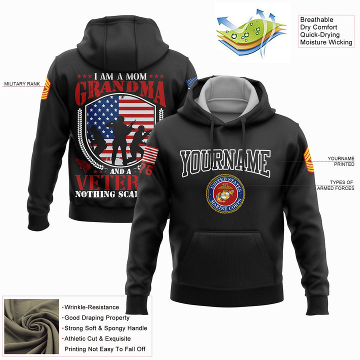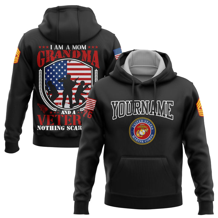 Custom Black I'm A Mom Grandma 1776 Flag U.S Marine Corps Military Rank Name Veterans Day Hoodie | Father's Day Gifts