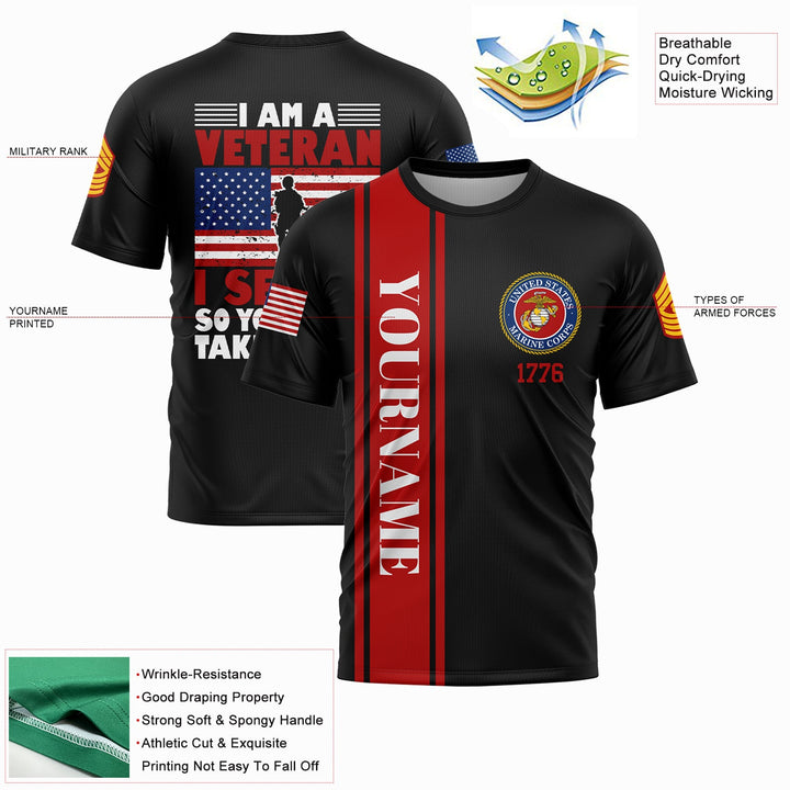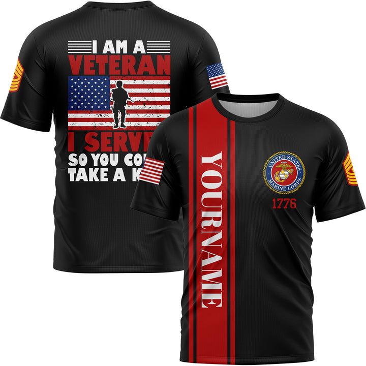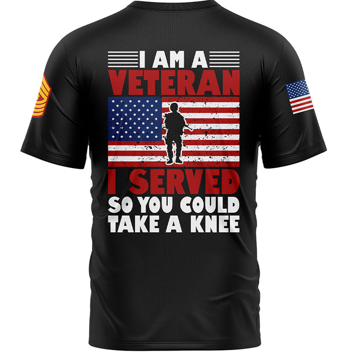 Custom Black I'M A Veteran I Served So You Could Take A Knee 1776 Flag Military Rank Name Veterans Day T-Shirt