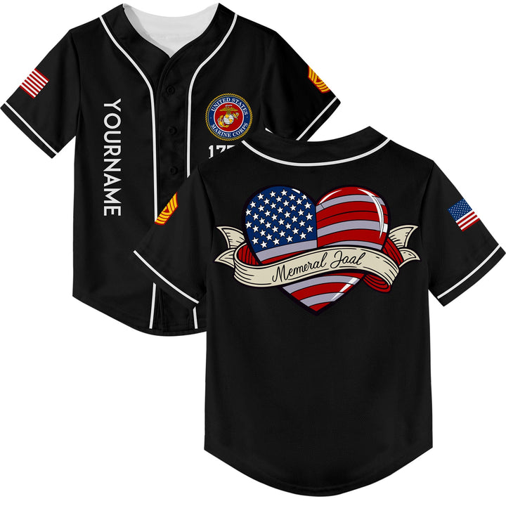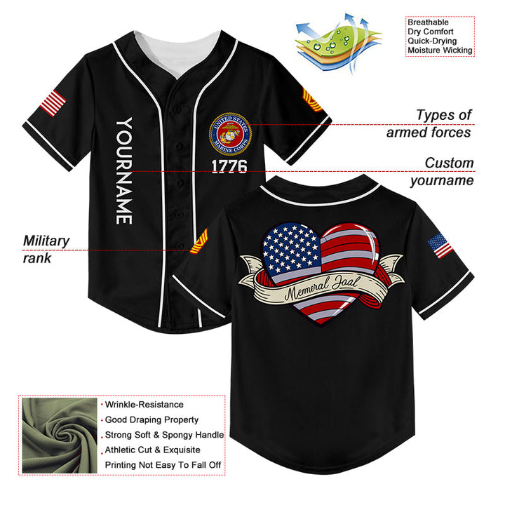 Custom Black Love 1776 American Flag U.S Marine Corps Military Rank Name Memorial Day Baseball Jersey