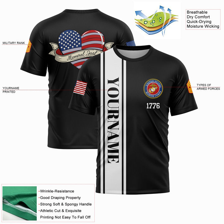 Custom Black Love 1776 American Flag U.S Marine Corps Military Rank Name Memorial Day T-Shirt