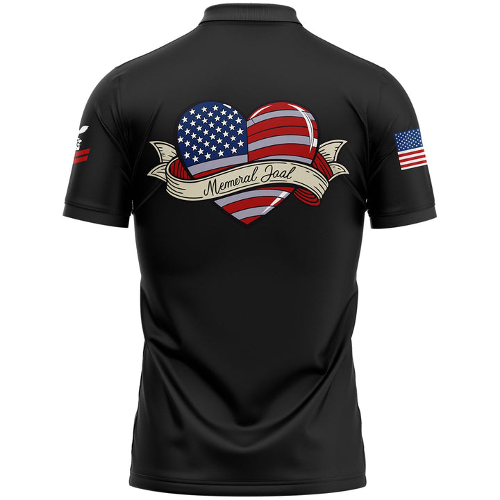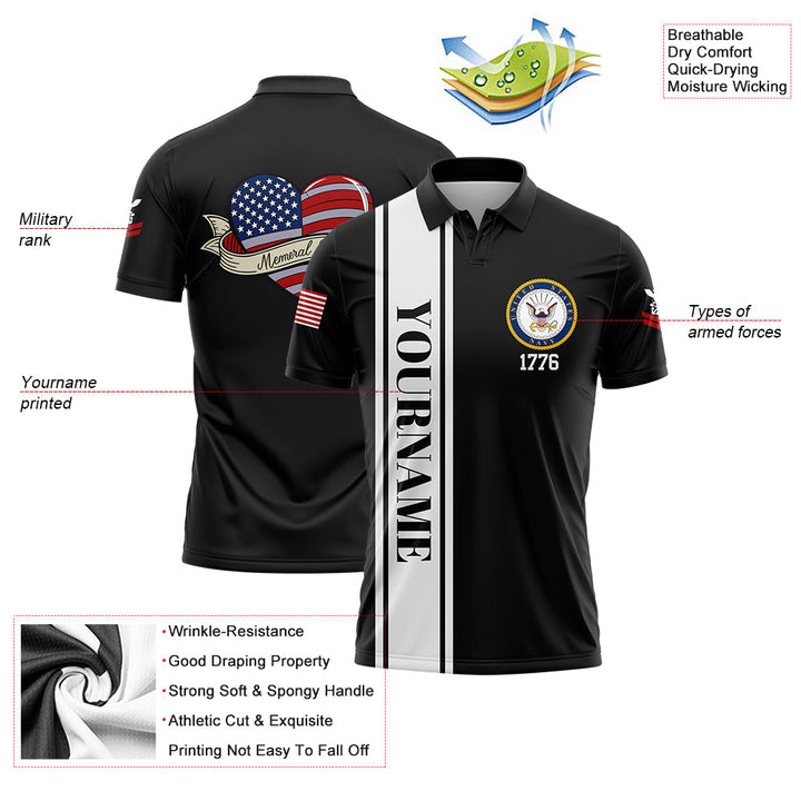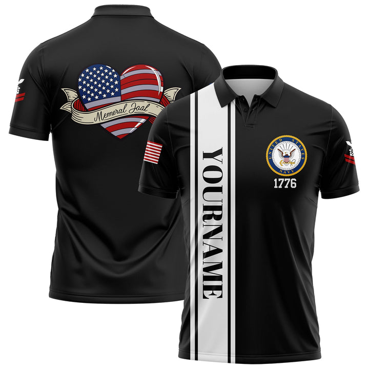 Custom Black Love 1776 American Flag U.S Navy Military Rank Name Memorial Day Golf Polo Shirt