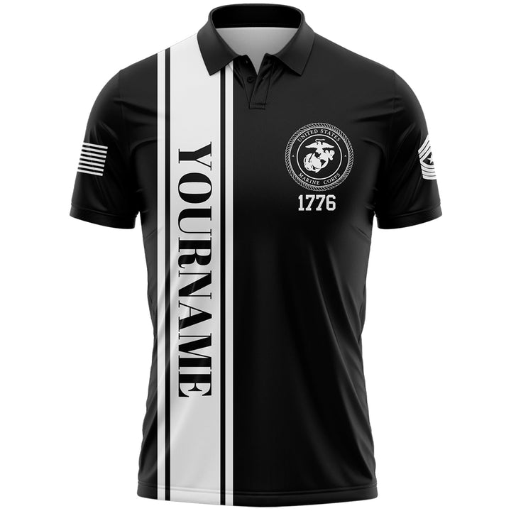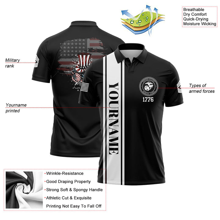 Custom Black Magic Hat American Flag Military Rank Name Independence Day Golf Polo Shirt