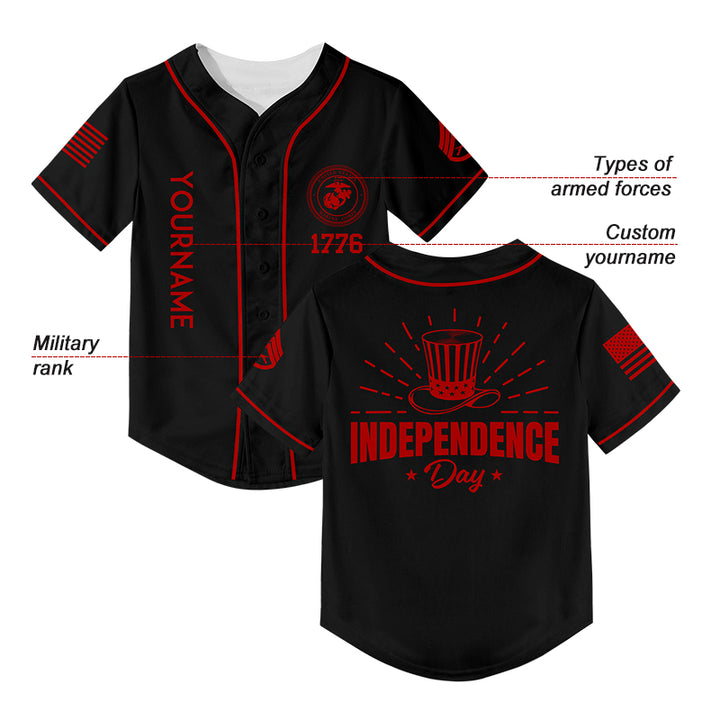 Custom Black Magic Hat Military Rank Name Independence Day Baseball Jersey
