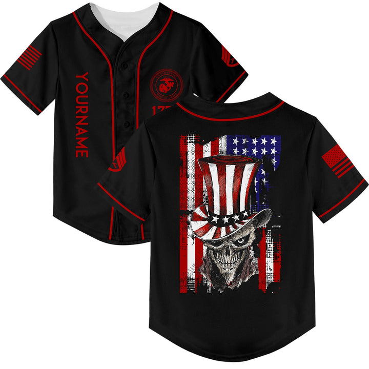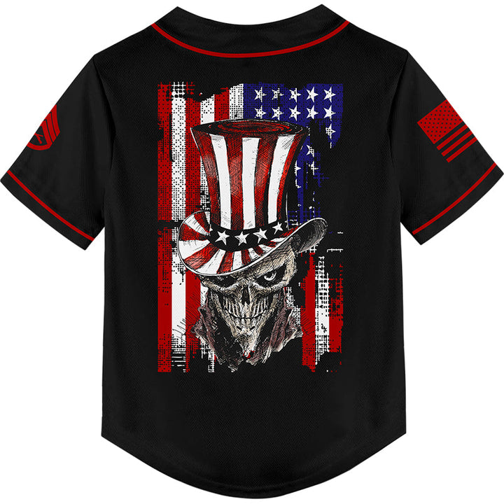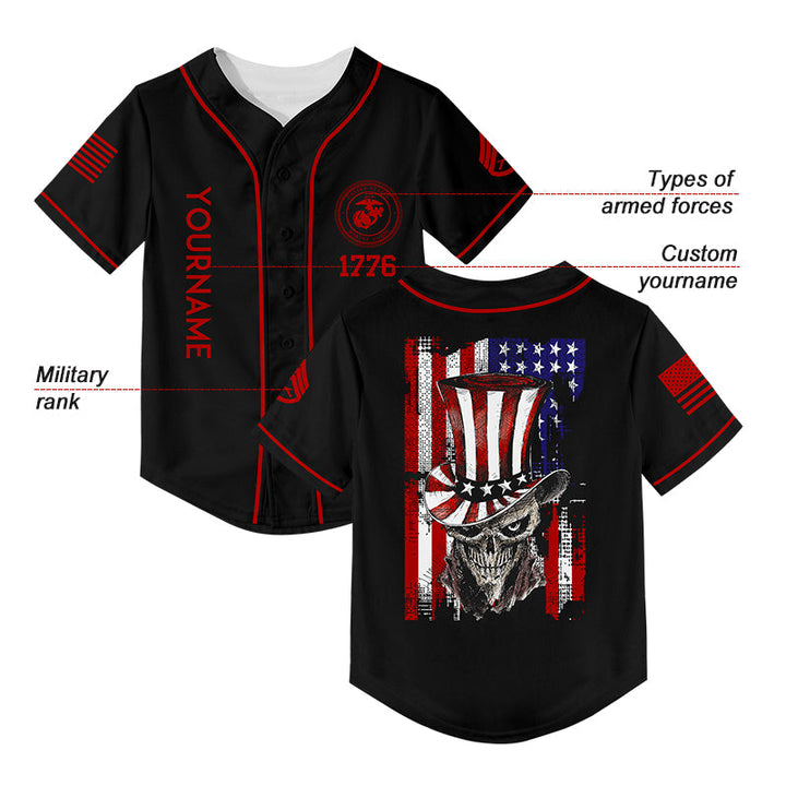 Custom Black Magician Skull Military Rank Name Independence Day Baseball Jersey