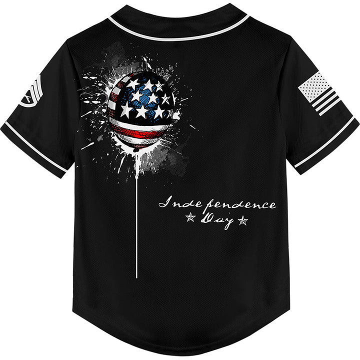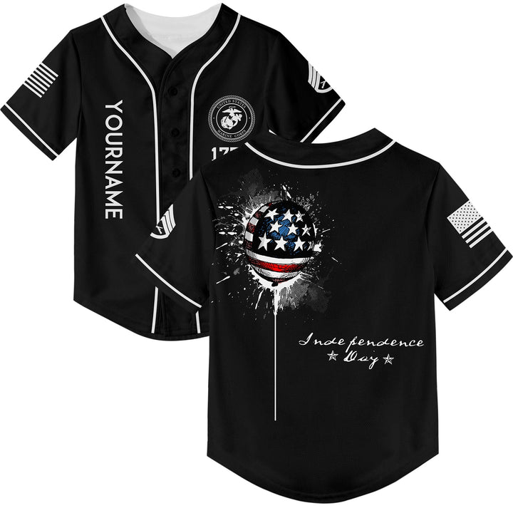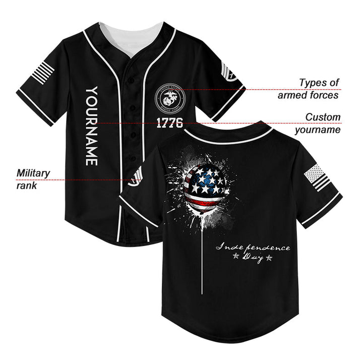 Custom Black Military Rank Name Independence Day Baseball Jersey