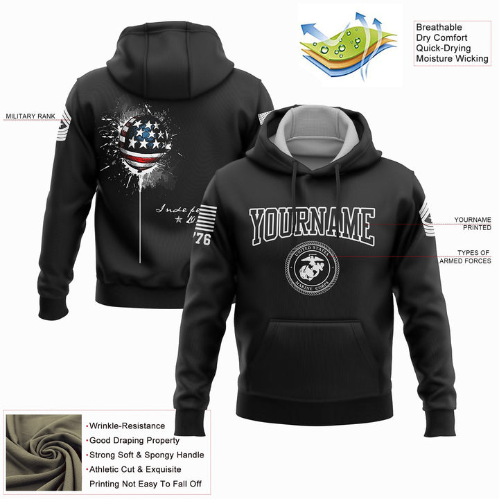 Custom Black Military Rank Name Independence Day Hoodie | Father's Day Gifts