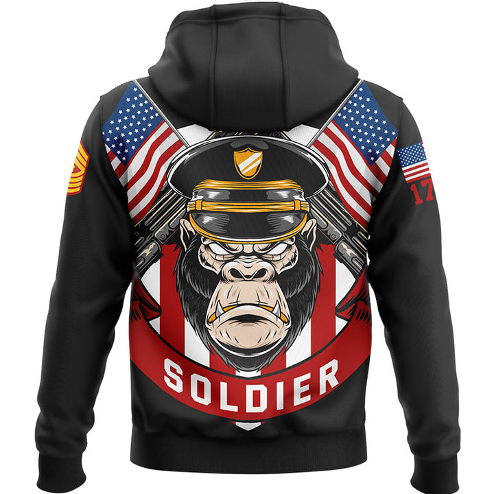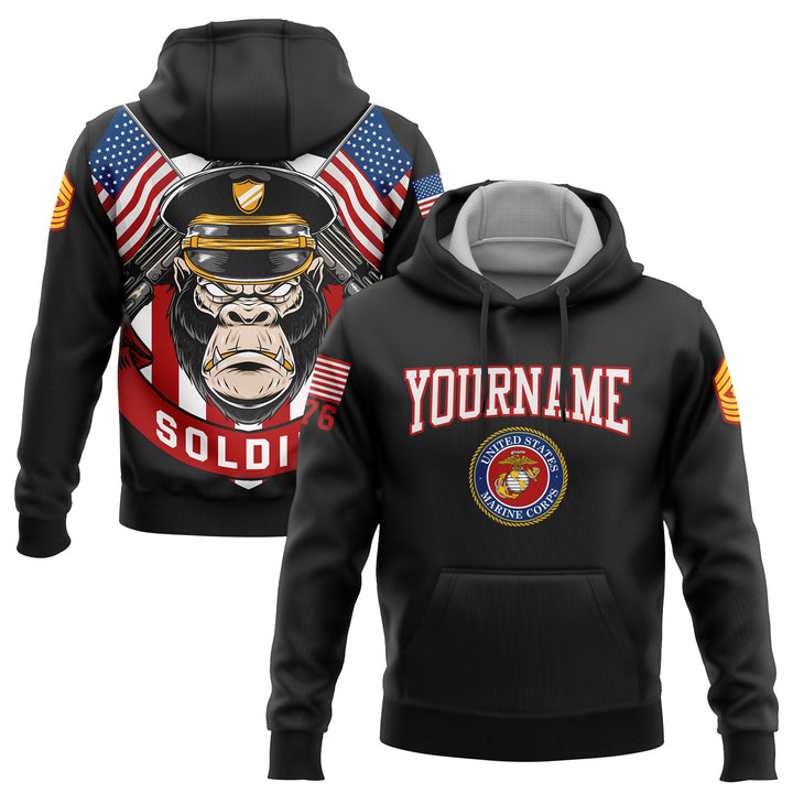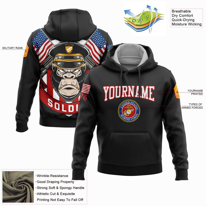 Custom Black Orangutan Soldier 1776 American Flag U.S Marine Corps Military Rank Name Hoodie