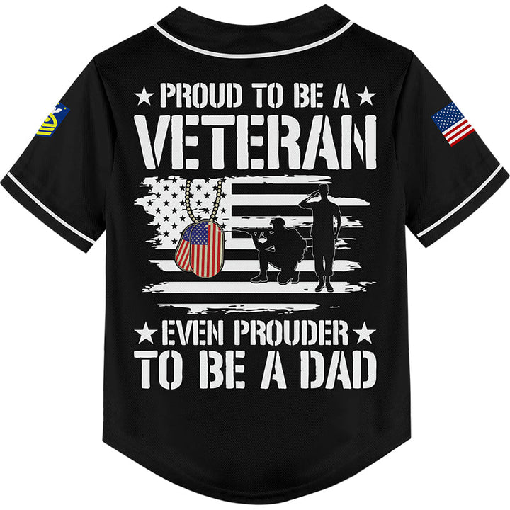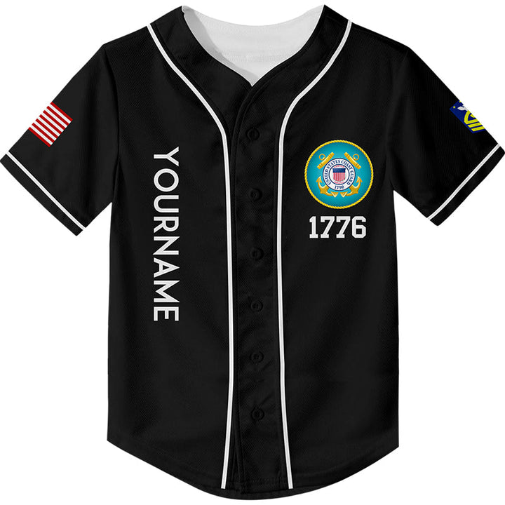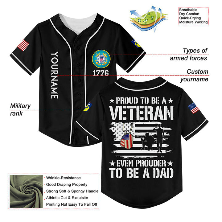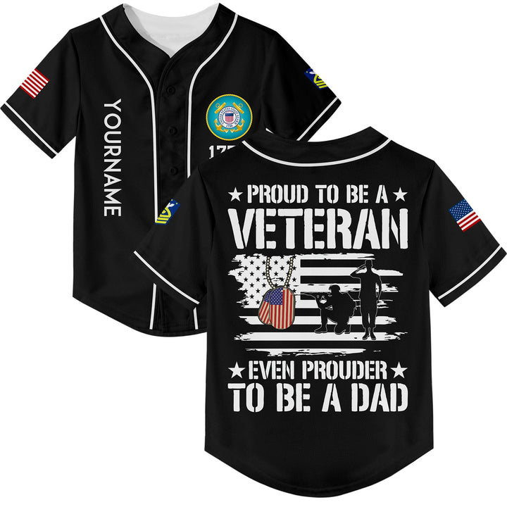 Custom Black Proud To Be A Veteran Even Prouder To Be A Dad 1776 Flag U.S Coast Guard Military Rank Name Veterans Day Baseball Jersey | Father's Day Gifts