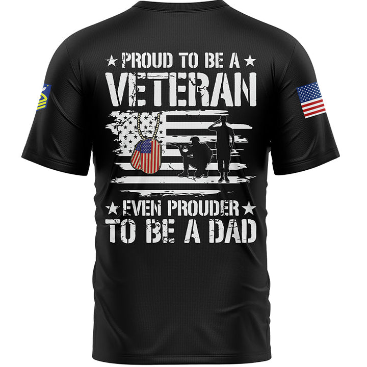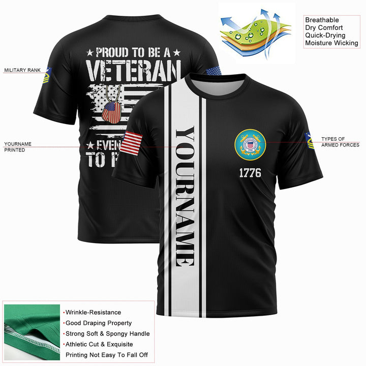 Custom Black Proud To Be A Veteran Even Prouder To Be A Dad 1776 Flag U.S Coast Guard Military Rank Name Veterans Day T-Shirt | Father's Day Gifts