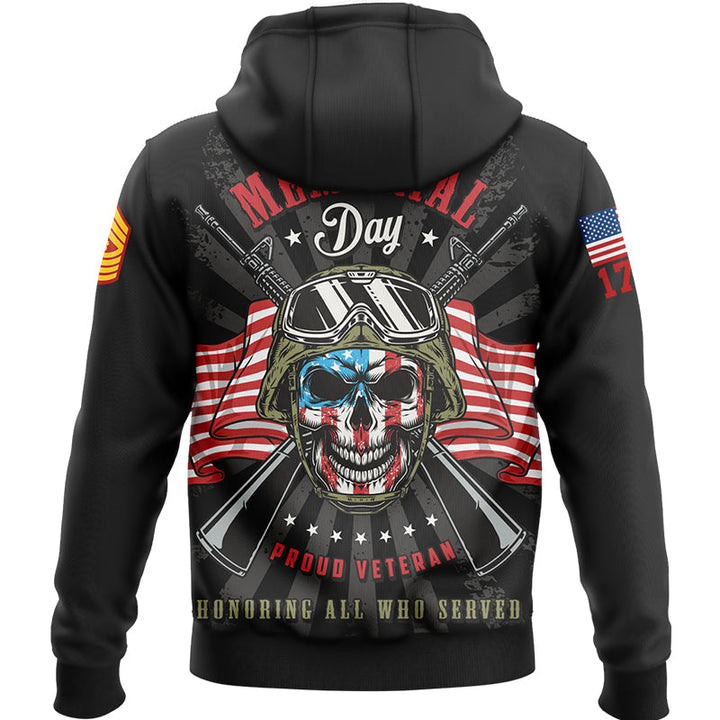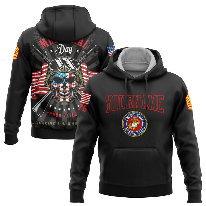 Custom Black Proud Veteran Honoring All Who Served 1776 American Flag U.S Marine Corps Military Rank Name Memorial Day Hoodie