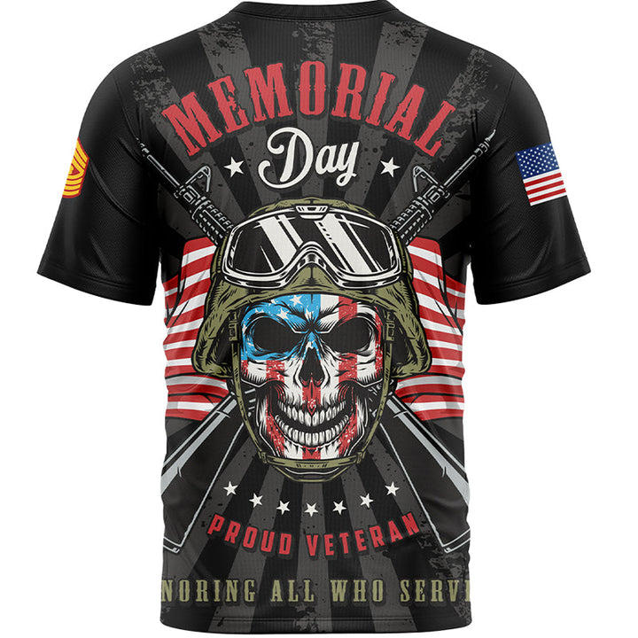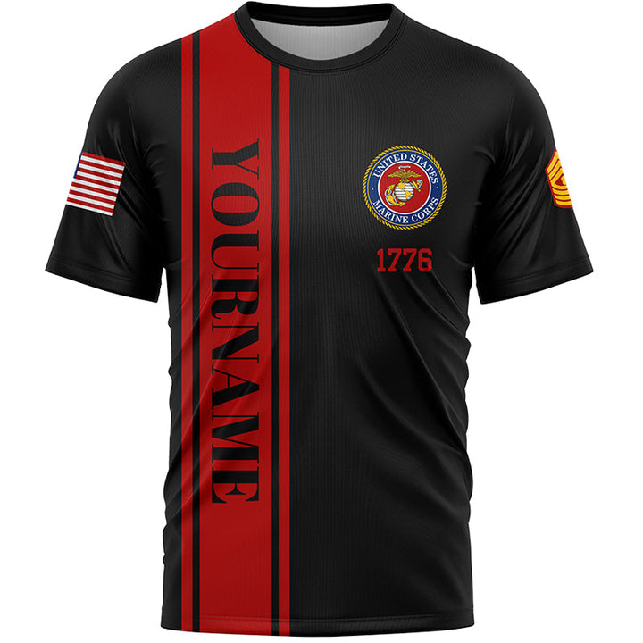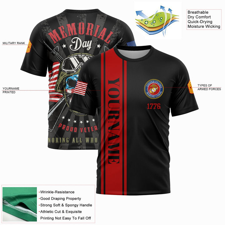 Custom Black Proud Veteran Honoring All Who Served 1776 American Flag U.S Marine Corps Military Rank Name Memorial Day T-Shirt